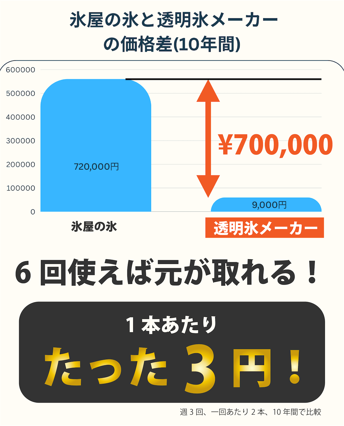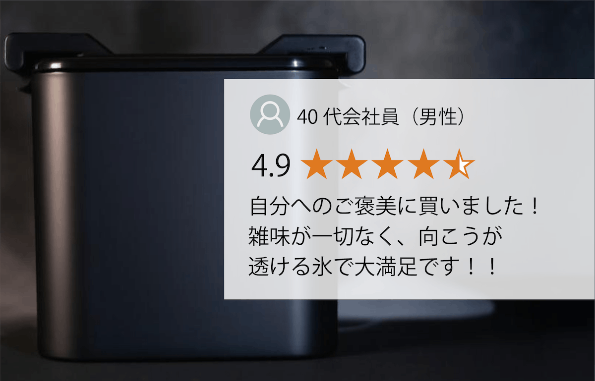 使用方法:水道水を入れて冷凍庫に24時間入れれば透明な氷の完成です。