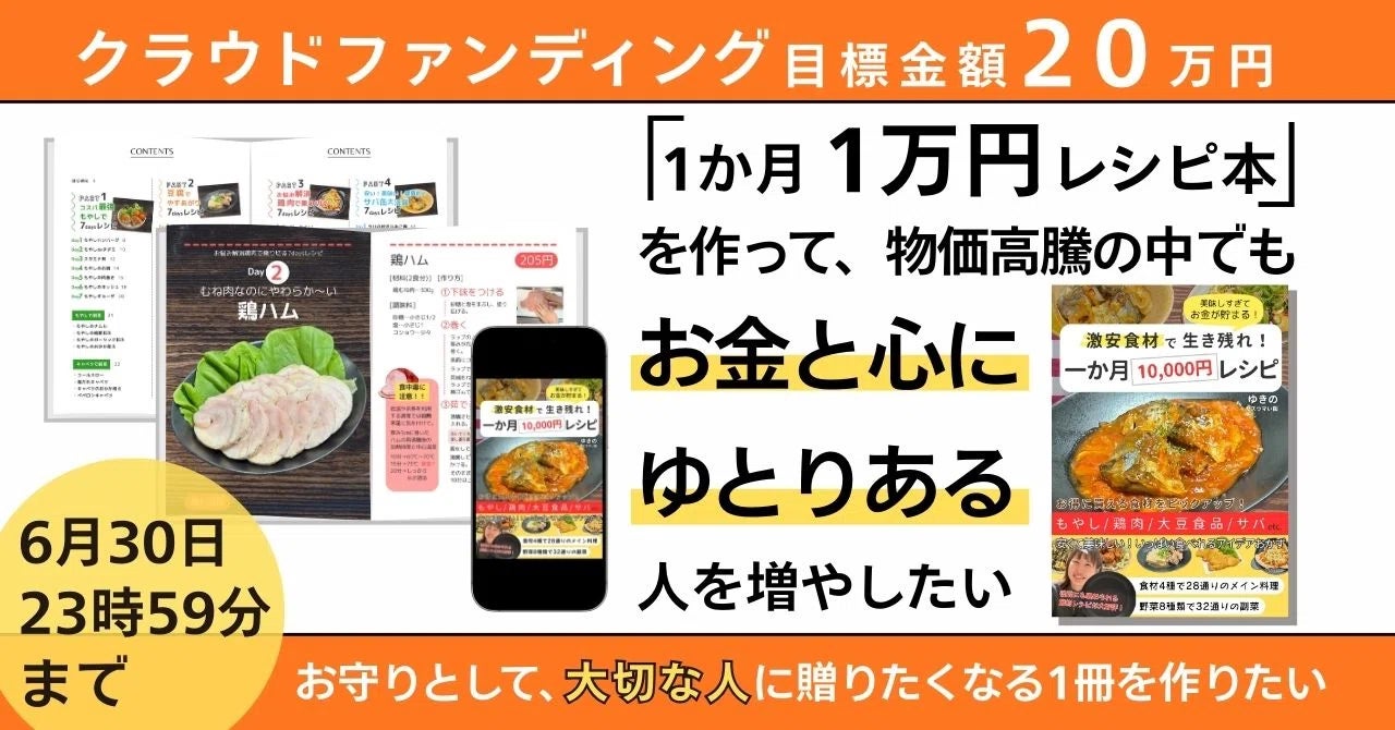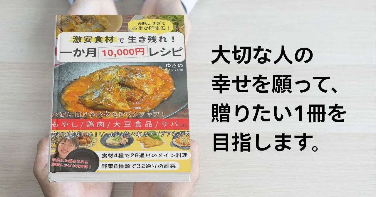 2025/12/01 12:59皆様、ご無沙汰しております、ゆきのです。この度、皆様に応援いただいた節約レシピ本「激安食材で生き残れ!1か月10000円レシピ」を無事に書籍として世に生み出すことが出来ました。また、書籍でのリターンをお選びいただいておりました方には昨日ポストインが完了しましたことをお知らせいたします。お手元に届くまで、今しばらくお待ちください!プロジェクトを応援いただいた皆様に、心から感謝申し上げます。30歳の節目に、1つ挑戦ができて本当に良かったです。電子書籍版、販売開始しております。▼電子書籍版「1か月10000円レシピ」販売ページ▼https://www.amazon.co.jp/dp/B0G1GG6KLBぜひお手に取っていただけると幸いです。また、紙の書籍版のAmazonでの販売も予定しております。販売開始しましたら、またご報告させていただきます。今後とも、どうぞよろしくお願いいたします。 もっと見る【あと10日】改めてご支援をお願いします!