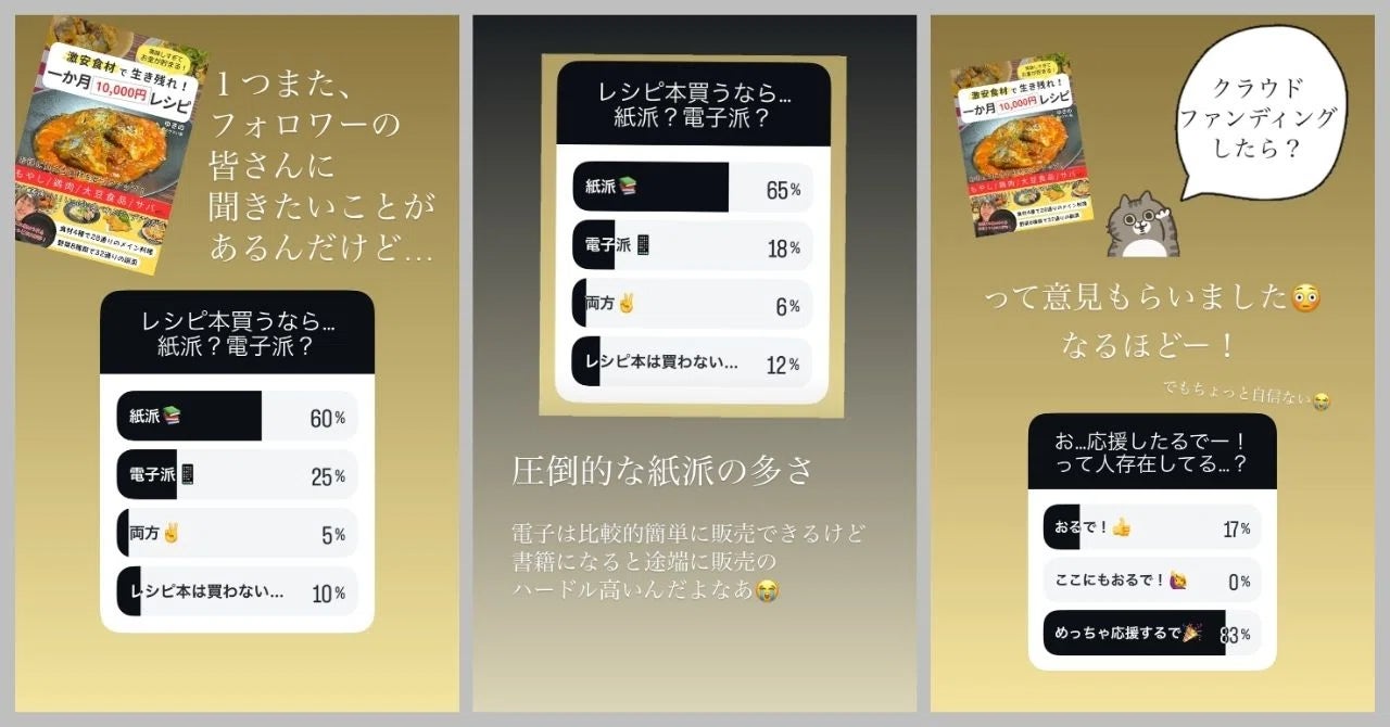 2025/06/17 11:43質問者様ご本人へメールでも回答いたしましたが>このプロジェクトが完全に実現された場合、どのような変化が人々の生活に訪れると思いますか?というご質問をいただいたので回答を掲載いたします。まず、私の考えているゴールは物価高でも平時でも変わらずに「お金と心にゆとりのある」状態になることです。昨今はとくに食費や生活費にかかる家計の負担が大きいことが取り上げられていて泣く泣く自分(母)の食事量を減らしているとか子どもたちの食事さえも満足に行き渡らないような環境が国という規模で起きていると思います。私の極貧生活は職業柄の生活苦なのでインフレが起きる前から当たり前のように節約するための食事を考えてきましたが今「家計が苦しい」「食費がかさんでいる」「似たような食材しか買えない中で違う献立を考えることが大変」と悩んでいる人たちが増えています。「我慢しないと…」っていう強迫観念で節約を辛いことと感じてしまっている人もいると思います。そんな人たちに向けて私の節約生活の知恵を振り絞った「1か月10,000円レシピ」本を制作しているところです。節約レシピがあるというのは非常に心強いと思っていてとくに私のレシピ本では・何を買えば良いか(節約できるか)判断できる・安く買える物=季節などで偏りがあることも多いので 同じ食材のレパートリーから選べば、飽きずに使い回せる・余計な物を買わなくて済むので使いすぎ防止にもなるなどの利点があります。量的な我慢なく、一般的に美味しい物が安価で比較的簡単に作れる ↓美味しく食べられて気づけばお金も残っていたという状態を、このレシピ本で作りたいと考えています。また、今は困っていない状態の人にとっても「お守り」のような存在も目指しています。例えば、いざ生活環境や収入の状況が変わった時や(うちの妹のように)初の一人暮らしで生活費のやりくりをしたことがなく不安な時にもこのレシピ本に沿って買い物や料理をすればばっちり節約が出来た健全な家計を保てるという安心感が持てると思います。最終的には、お金に余裕があること=心のゆとりに繋がり、心にゆとりのある人が増えれば、それぞれの人生がより豊かになったり自分に余裕があることでもっと人のためにと行動できる人が増えたりそういうプラスの社会的な変化が起きたら嬉しいなと考えています。 もっと見る