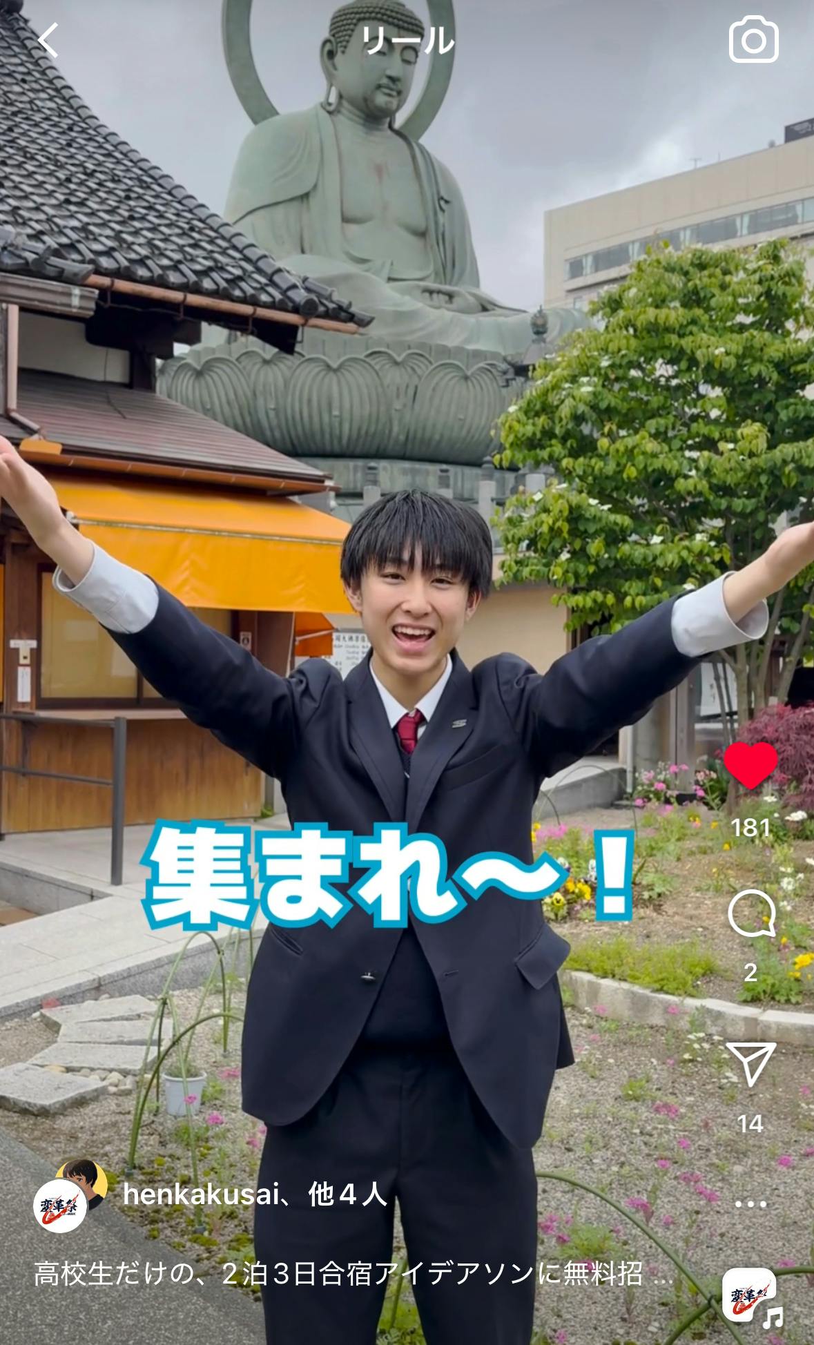 変革祭公式Instagramアカウントで、高校生挑戦者を募集するリール動画を投稿しました!