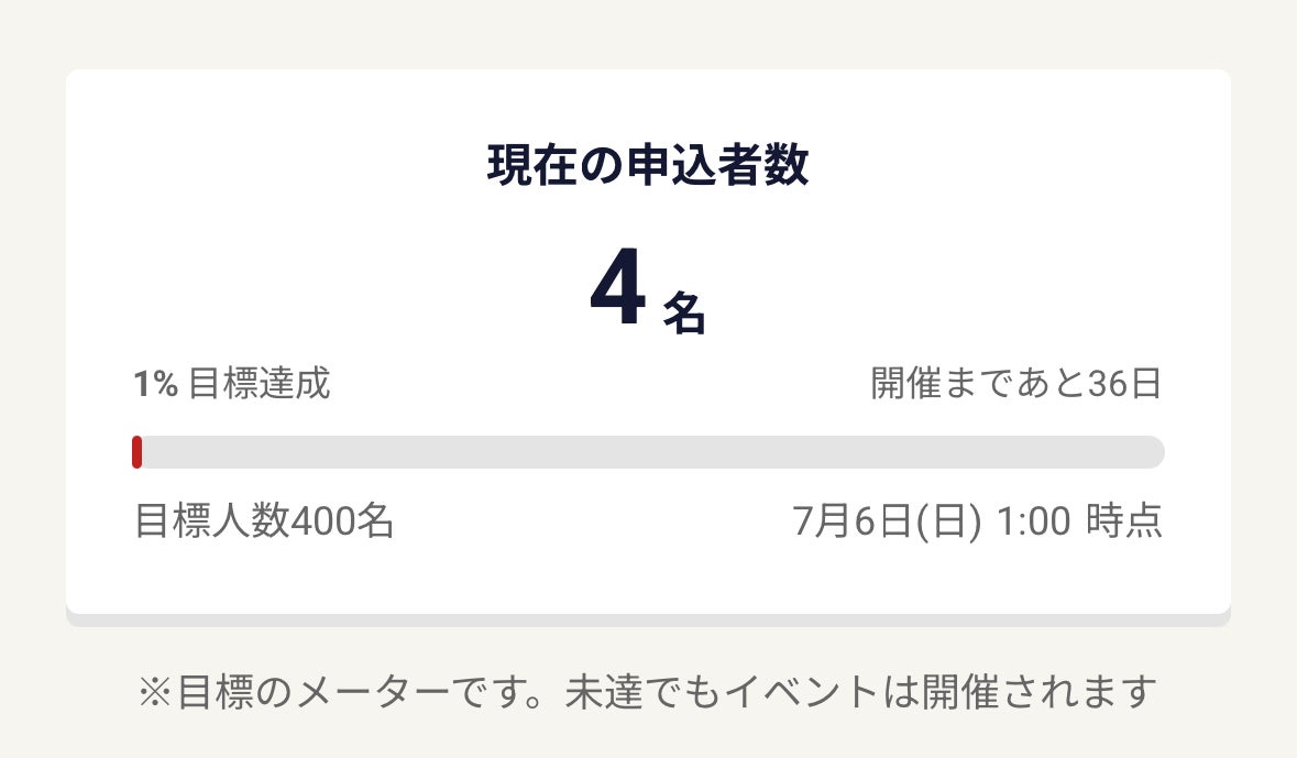 そして今回、400人集客に向けての歩みを皆さんと共有したく、特設ページにクラウドファンディングをパロディした「観客メーター」を設置しました!