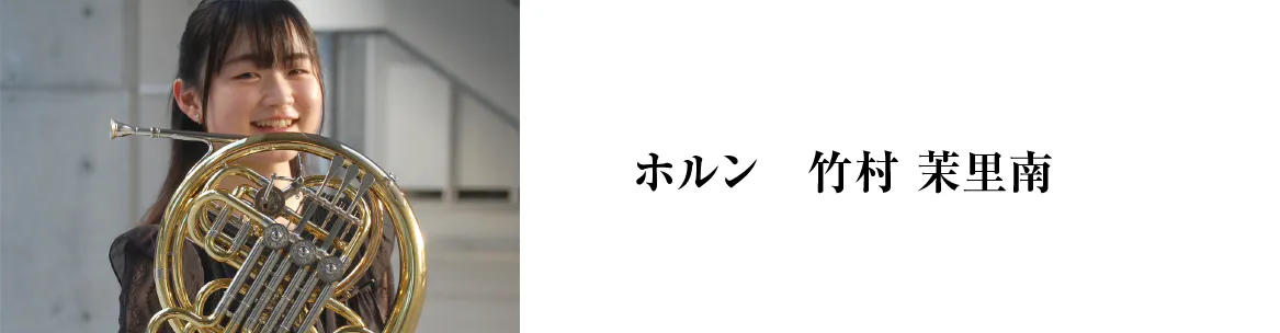 今回、高校生の頃から憧れていたAYOに参加させていただける事に大きな喜びと期待を抱いています。異国の地で、異なるバックグラウンドを持つメンバーと共に学び、一つの音楽を作りあげていく事が楽しみで仕方ありません。ホルン 竹村 茉里南