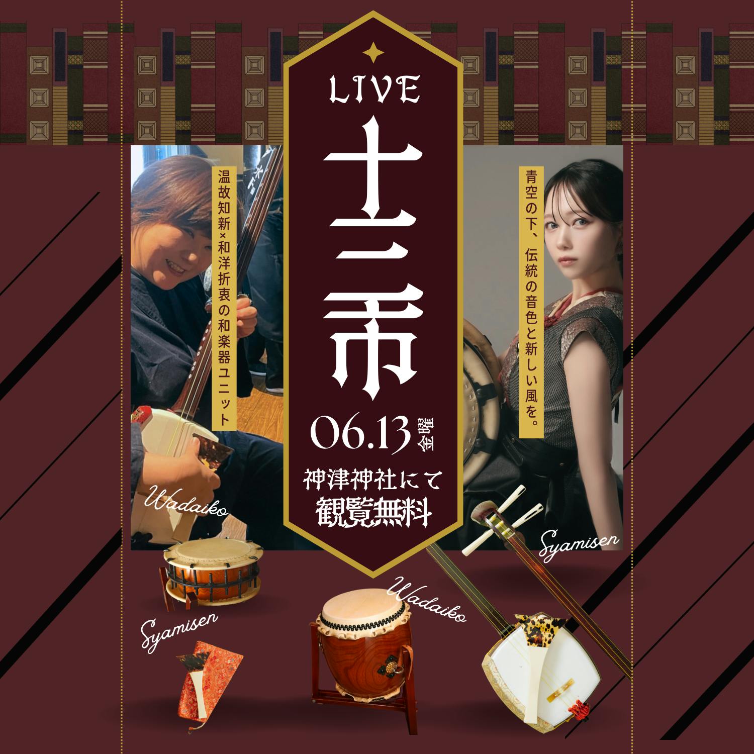 6/13 神津神社で行われました十三市にて演奏させていただきました。