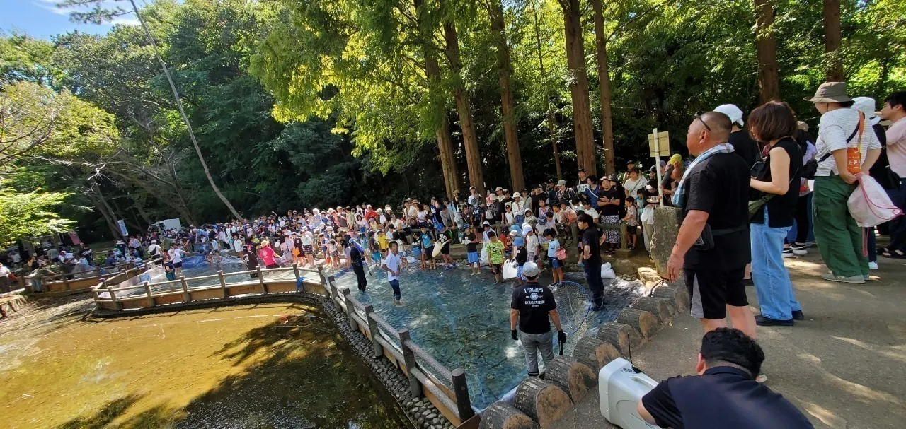 2000年に「水辺のクリーン作戦」として始まったこの活動は、当初は釣り堀イベントだったそうです。しかし子どもたちが水に入って直接魚を追いかける方が喜ぶことがわかり、翌年からは「つかみ取り」として定着したとのこと。