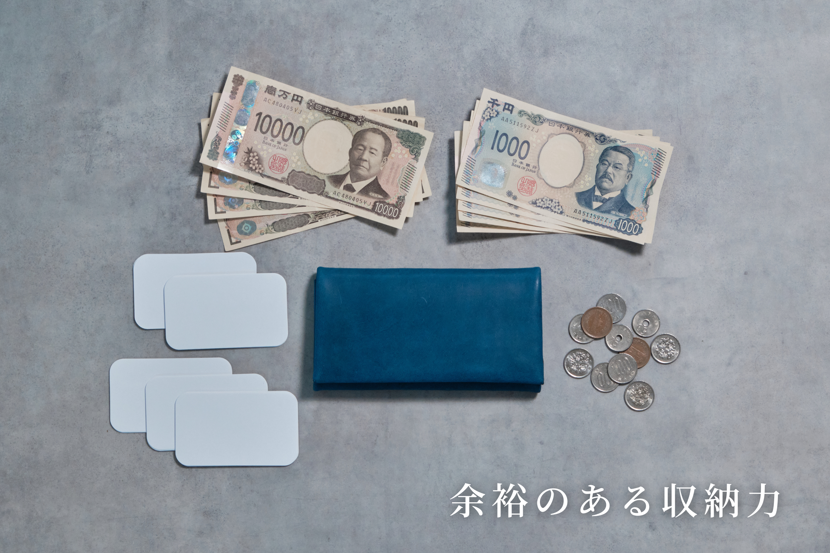 サイズ感: 一万円札とほぼ同サイズ。ミニマルと収納力の両立。