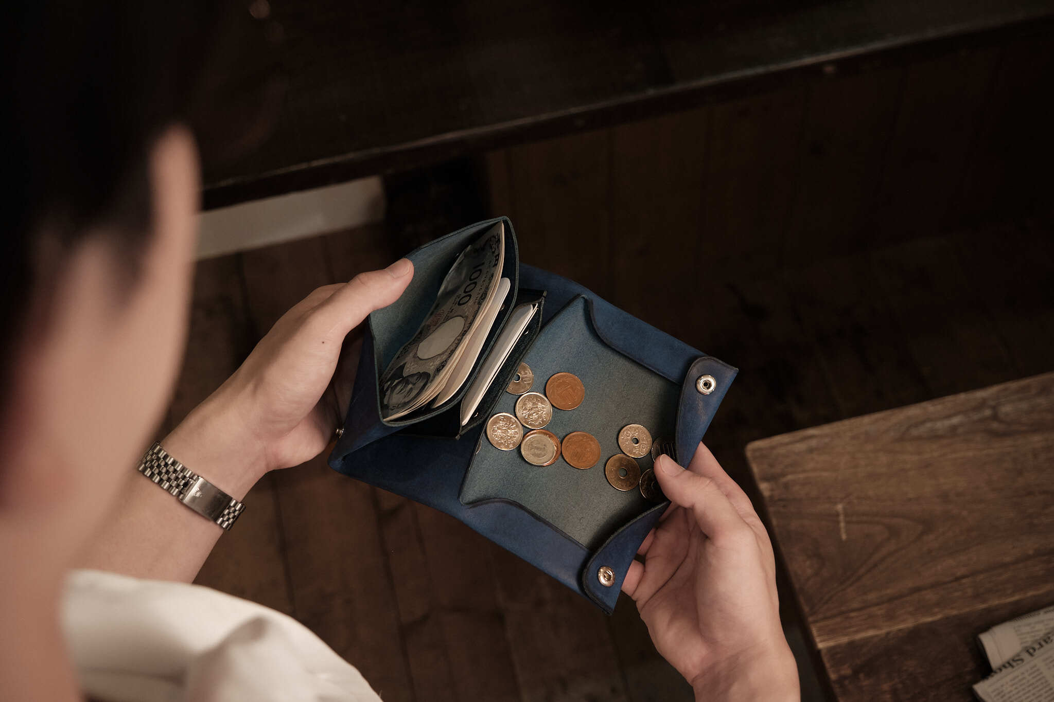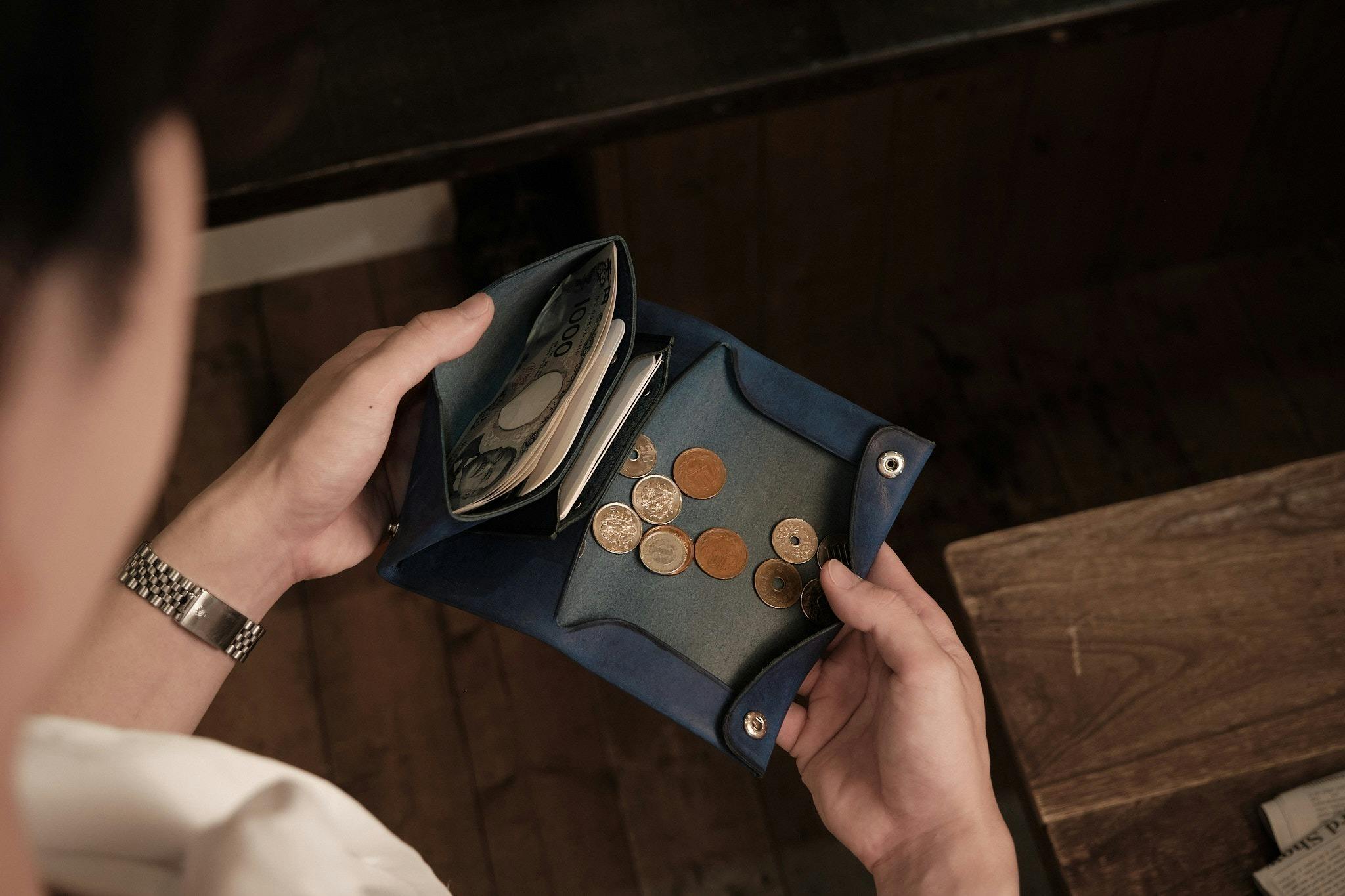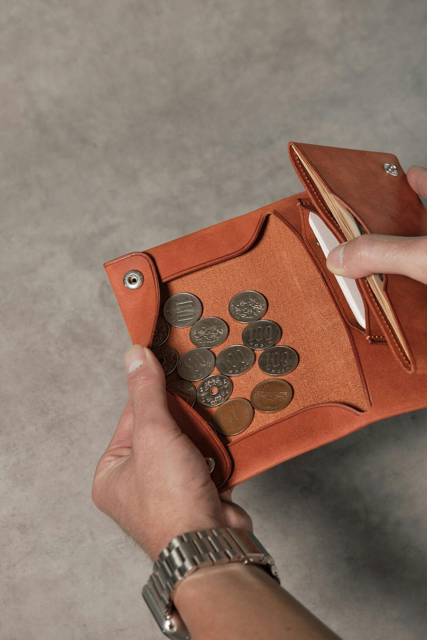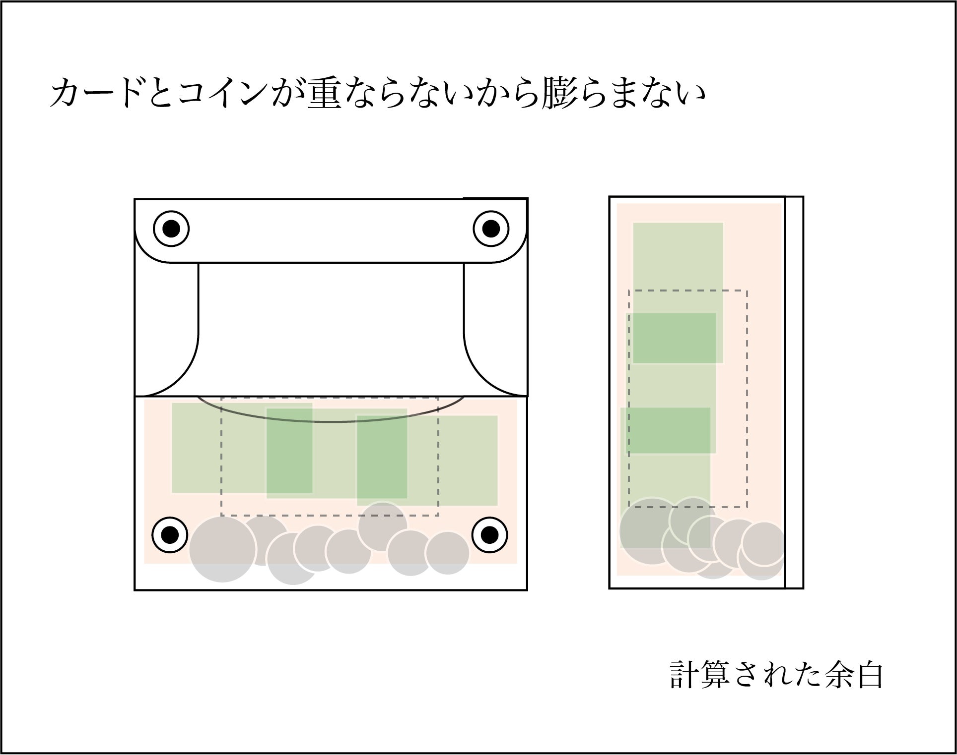 財布の下側と両サイドの余白は、ポケットに入れた際のコインの移動を促し、かさばりを軽減します。