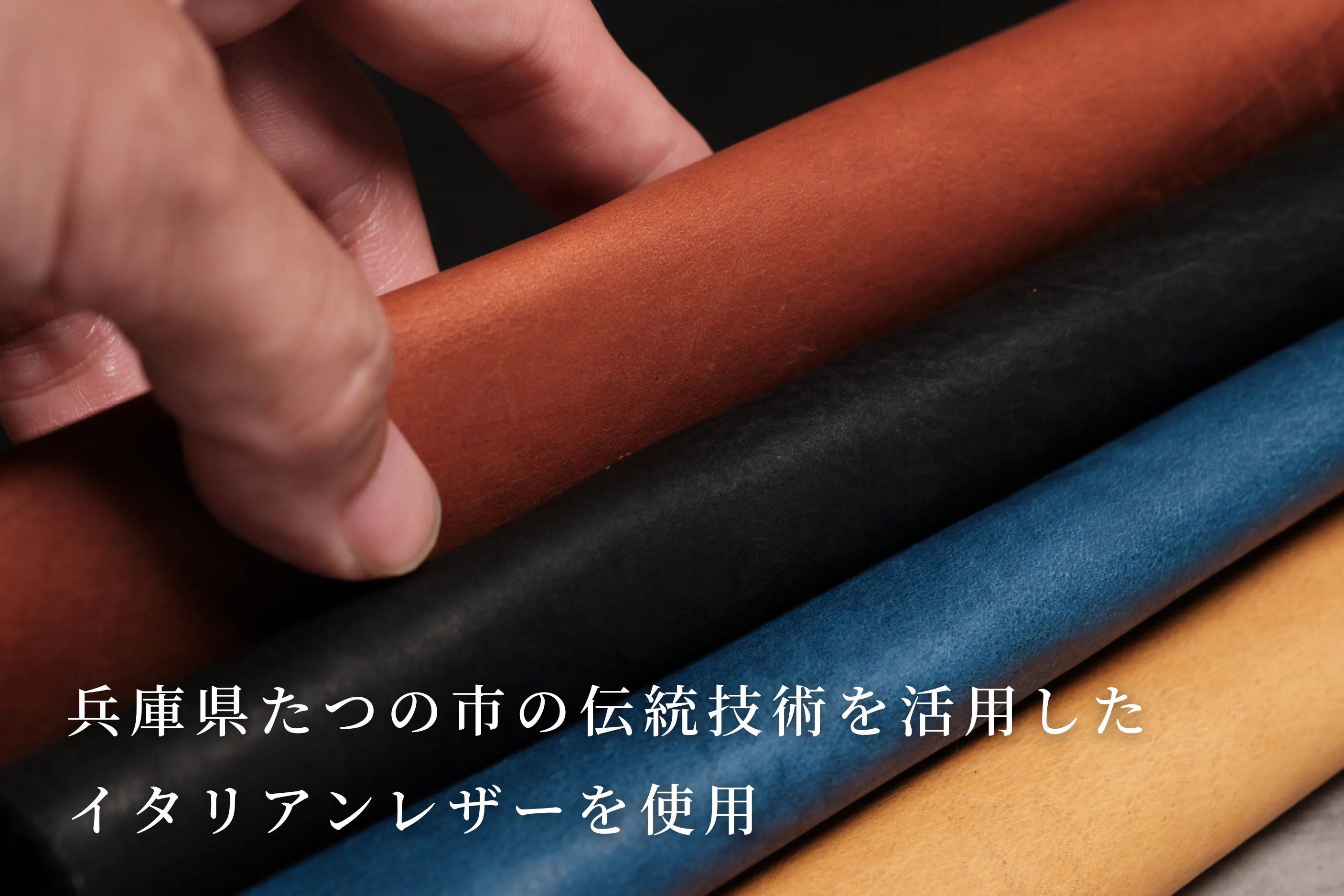 HORIZONには、兵庫県たつの市の伝統技術とイタリアの革文化が融合した特別なオイルレザーを採用。