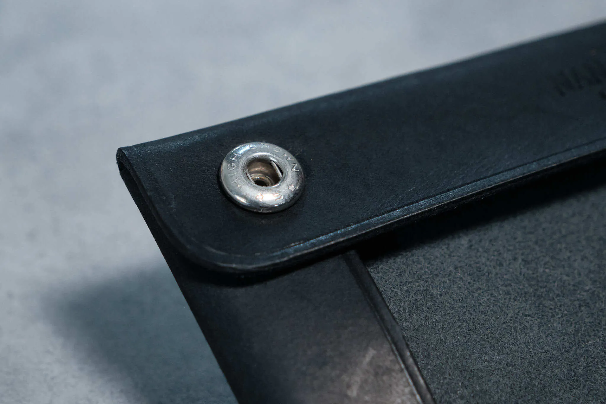 革の重なりを最小限に抑えることで、全体の厚みをスリムに仕上げ、見た目にも持ち運びにもスマートさを実現しています。