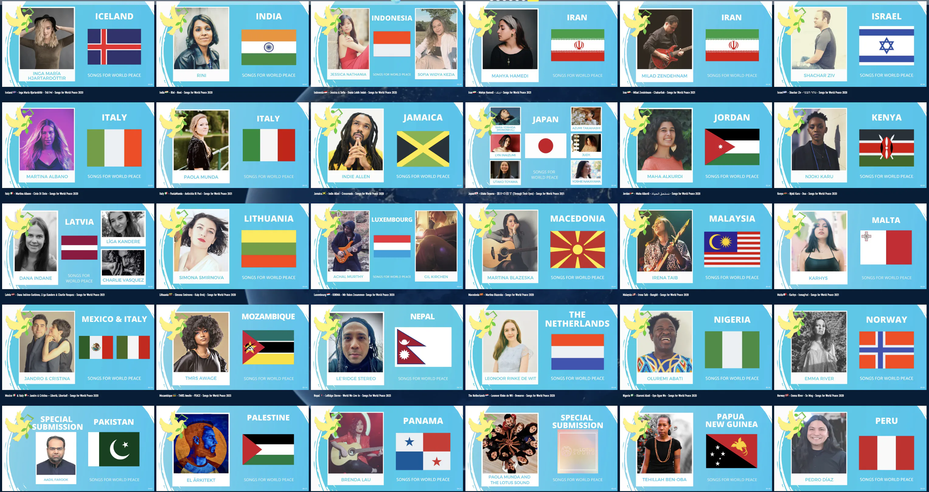 これまで平和の歌を発表したSongs for World Peaceアーティストの一部