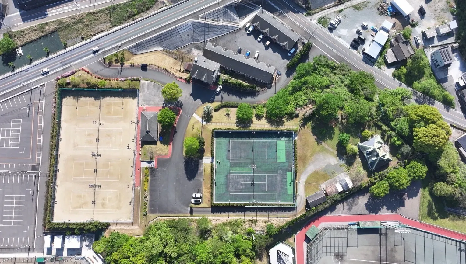 クレーコート4面とハードコート2面、ナイター設備、駐車場約40台完備。
