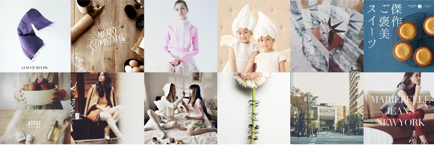 これまで、ラフォーレ原宿、表参道ヒルズ、サークルKサンクス、ファミリーマート、森ビル、成城大学、中国飯店、日比谷花壇他多数の多くの企業の新商品開発、デザイン、ブランディング、販促、広告展開、マーケティングなど企業のクリエイティブディレクションを手掛けてきました。(作品は後半に掲載)