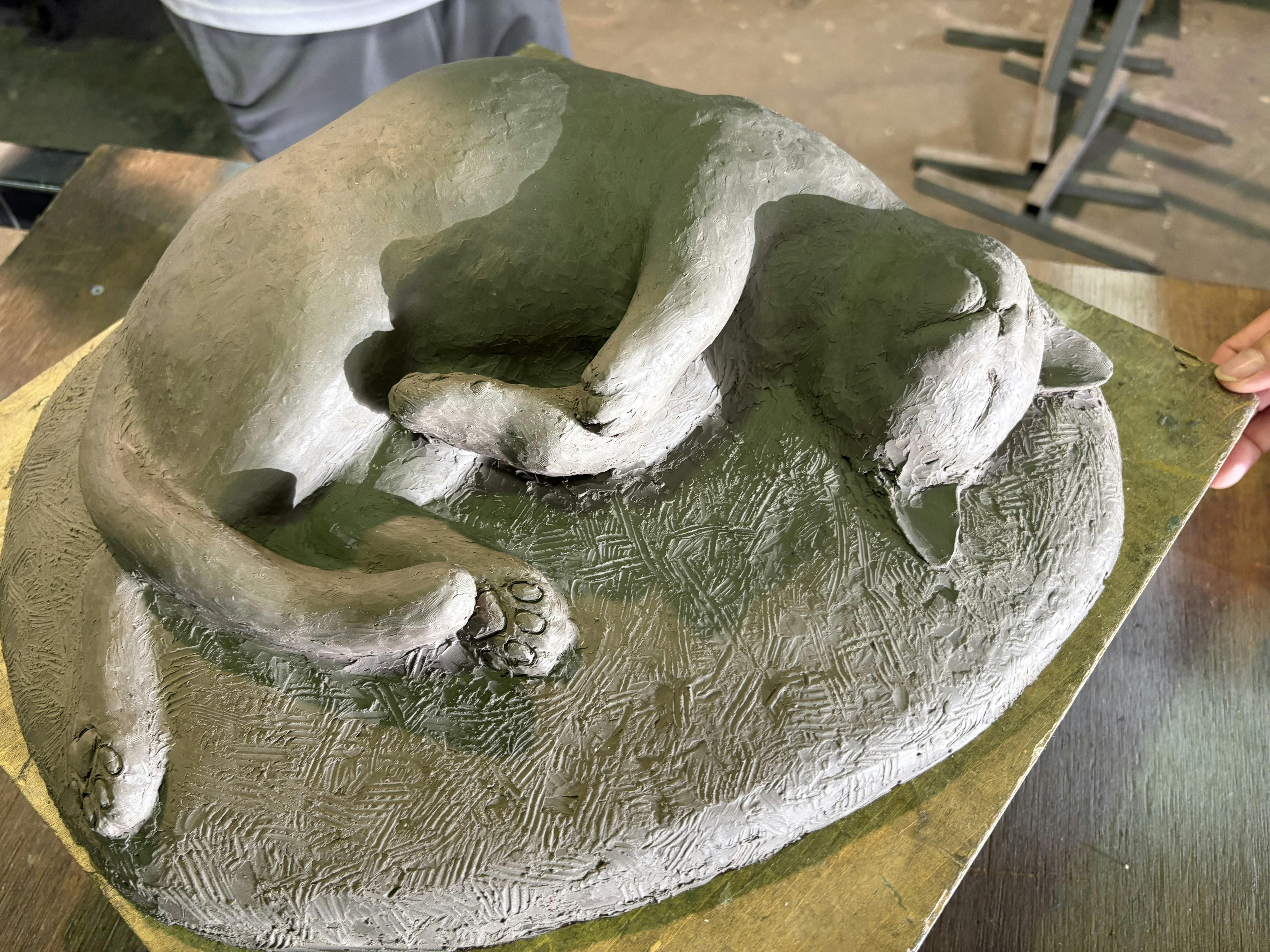 現在、制作を進めております「撫で猫像」の*クレイモデル(原型)*をご紹介いたします!