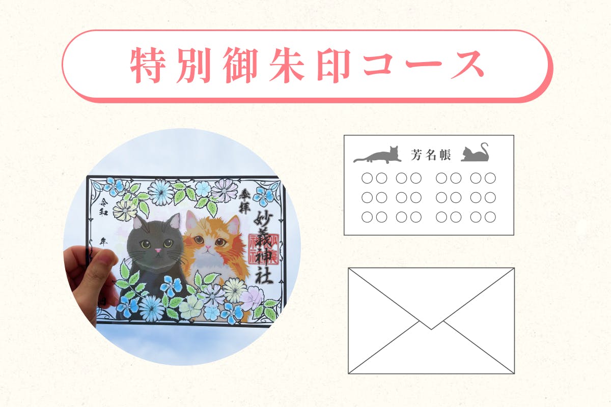 寄り添う二匹の猫が、そっとあなたを導き、御朱印巡りを見守ります。