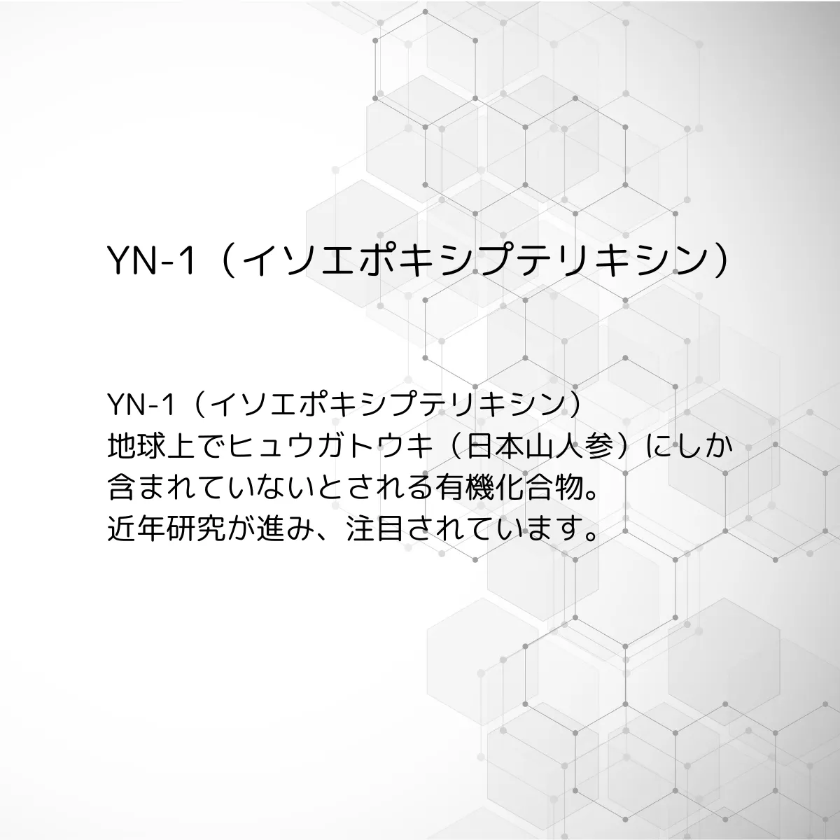地球上でヒュウガトウキにしか含まれていないとされる有機化合物YN-1(イソエポキシプテリキシン)。