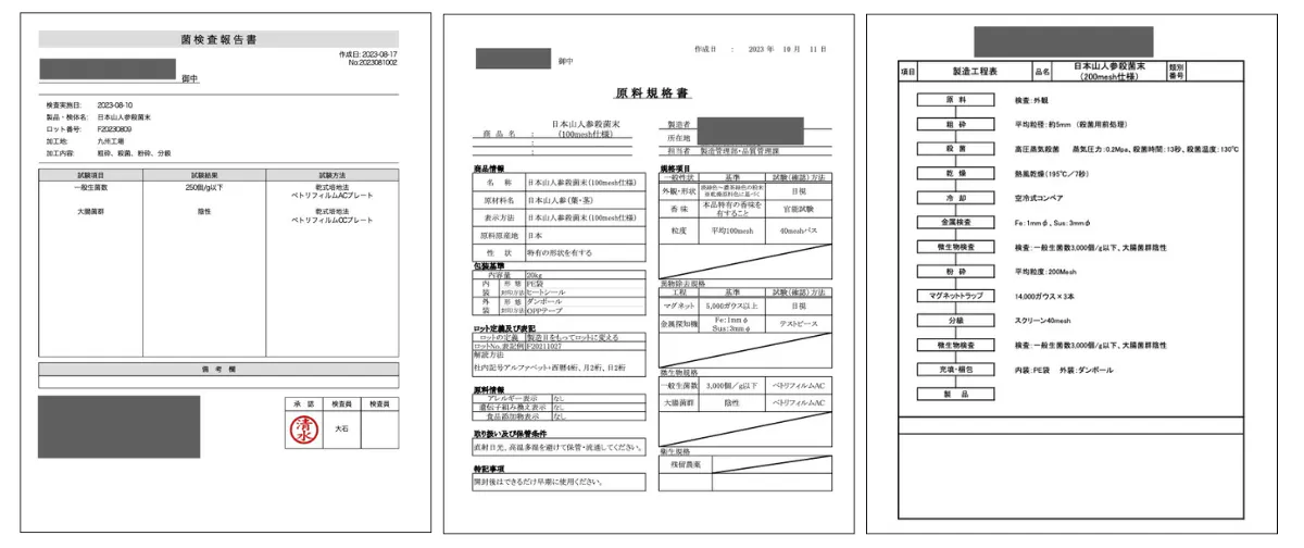 成分検査・菌類検査や製造工程も厳格に管理されています。