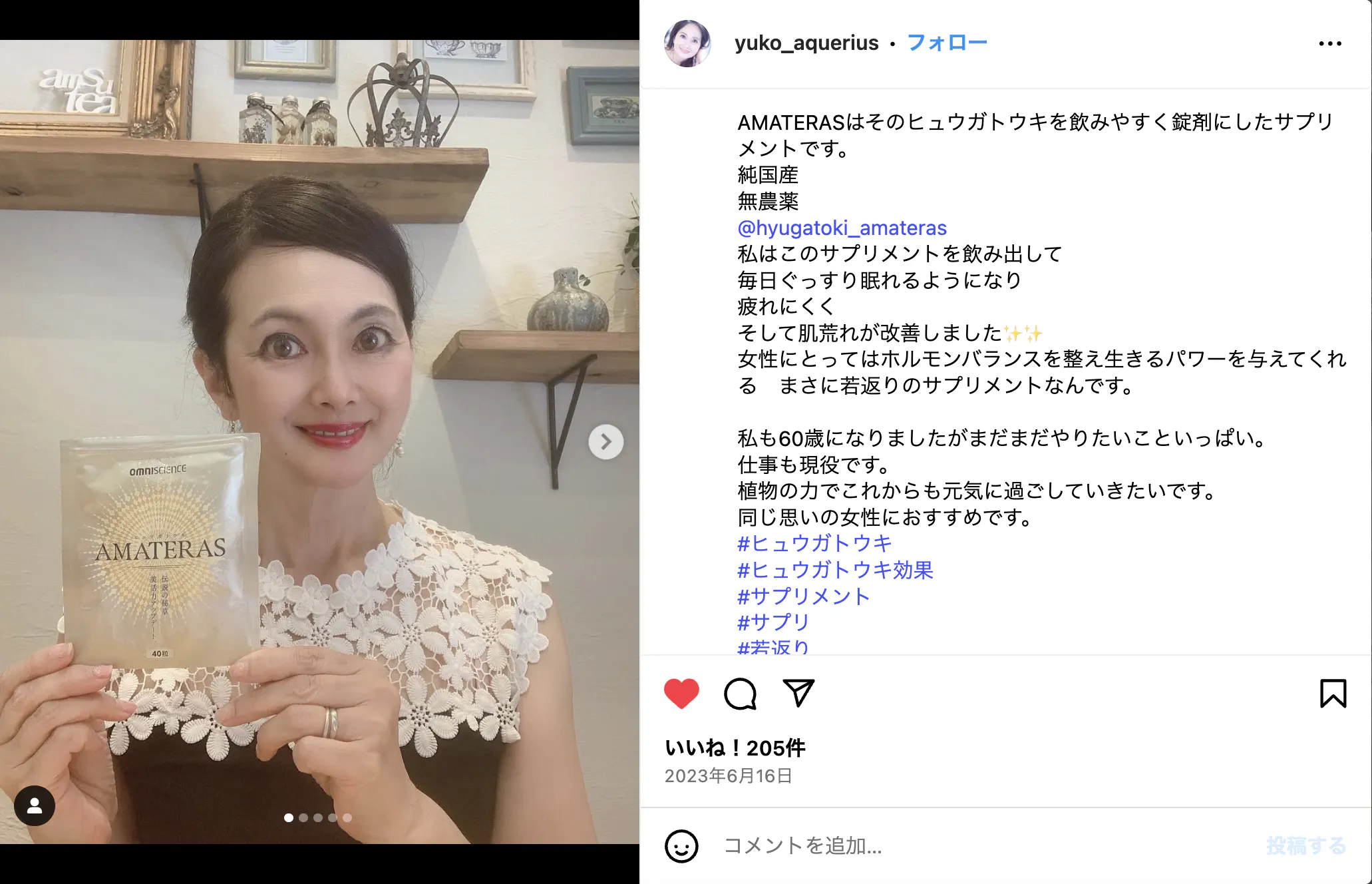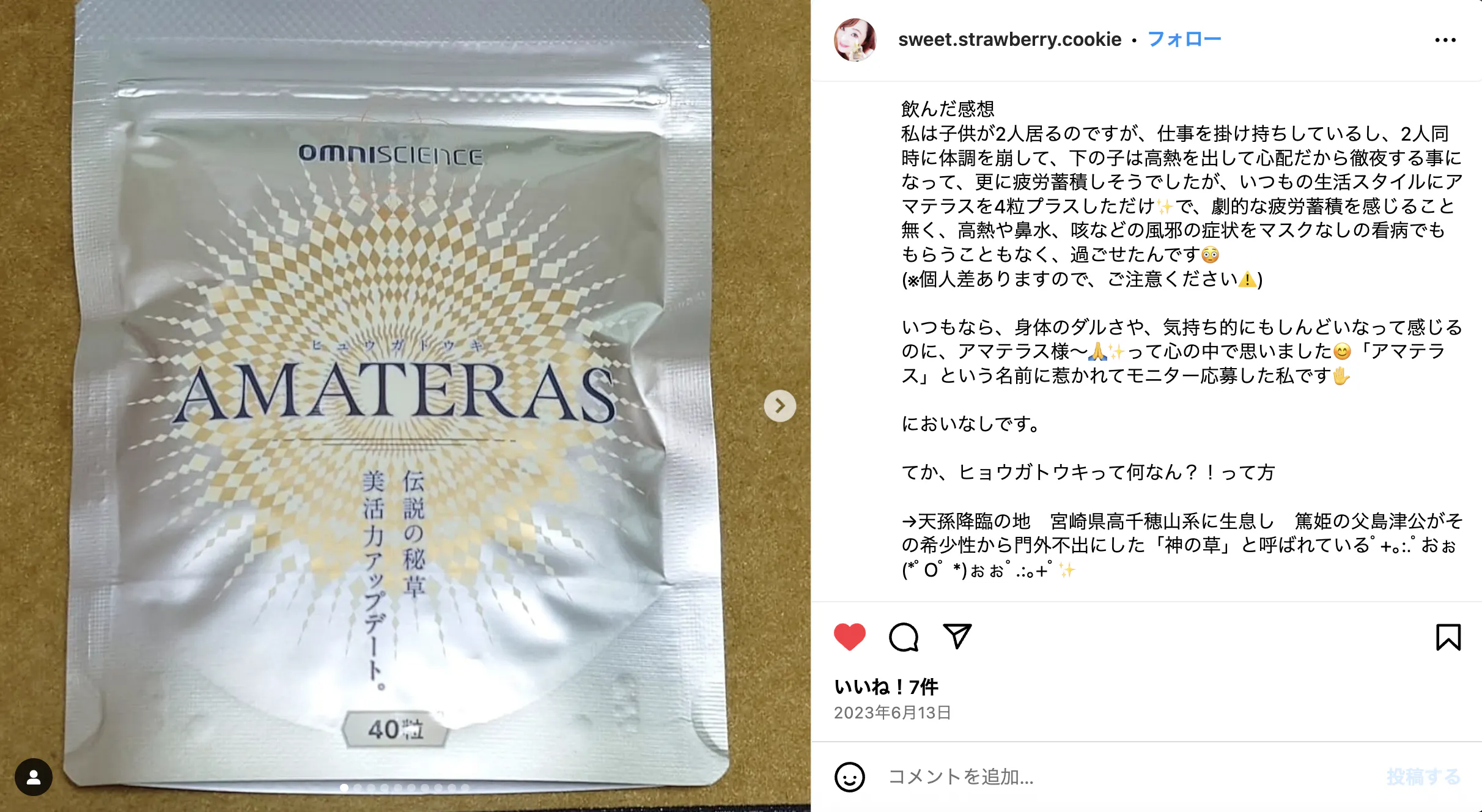今のこのポテンシャルを持続したい方にこそ、ぜひ飲んでいただきたいアマテラス。