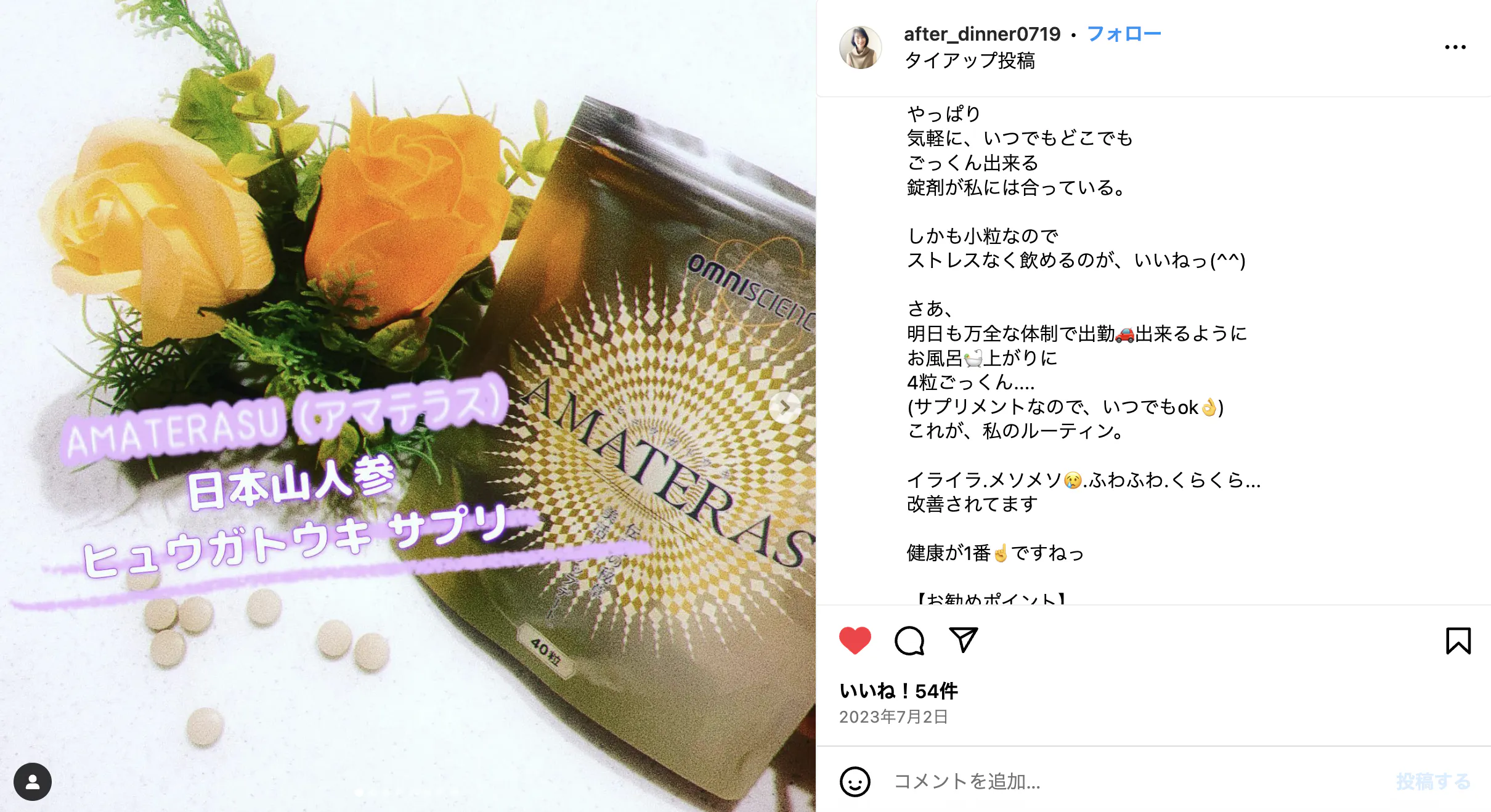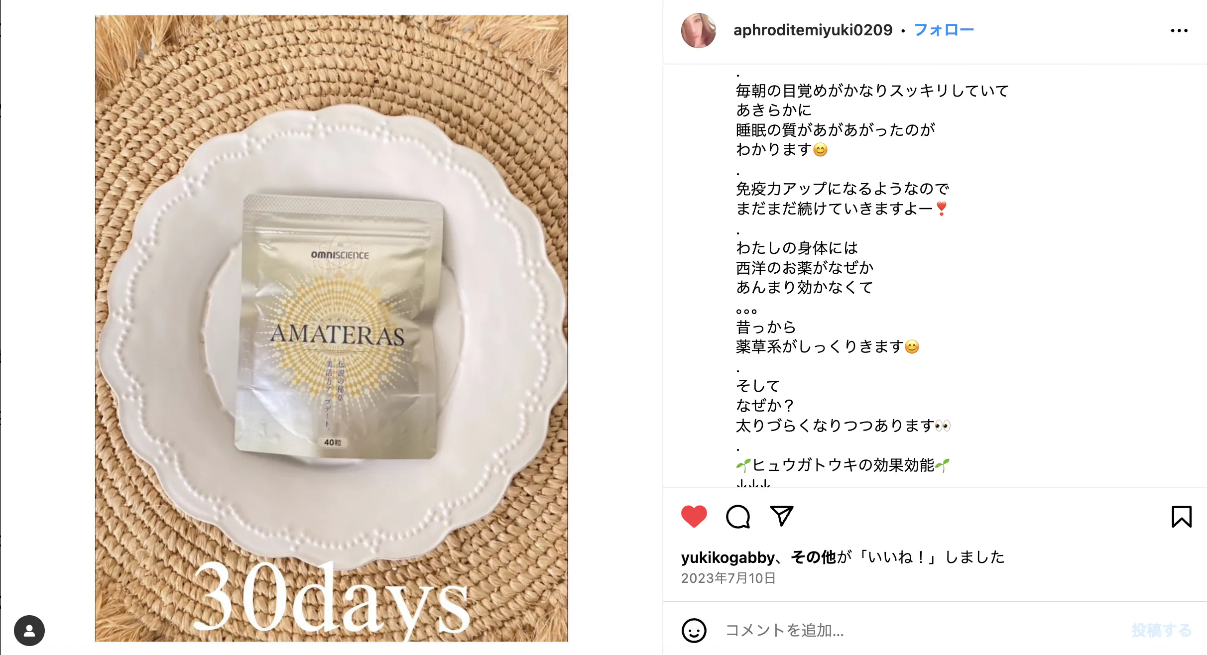 サプリメントジプシーの方がアマテラスに出会い、あれこれ飲んでいたサプリを断捨離しています。