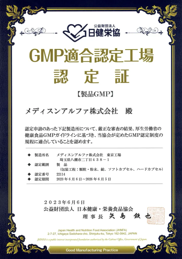 安全規格のGMP認定取得工場で製造しています。