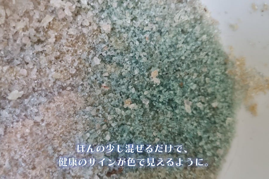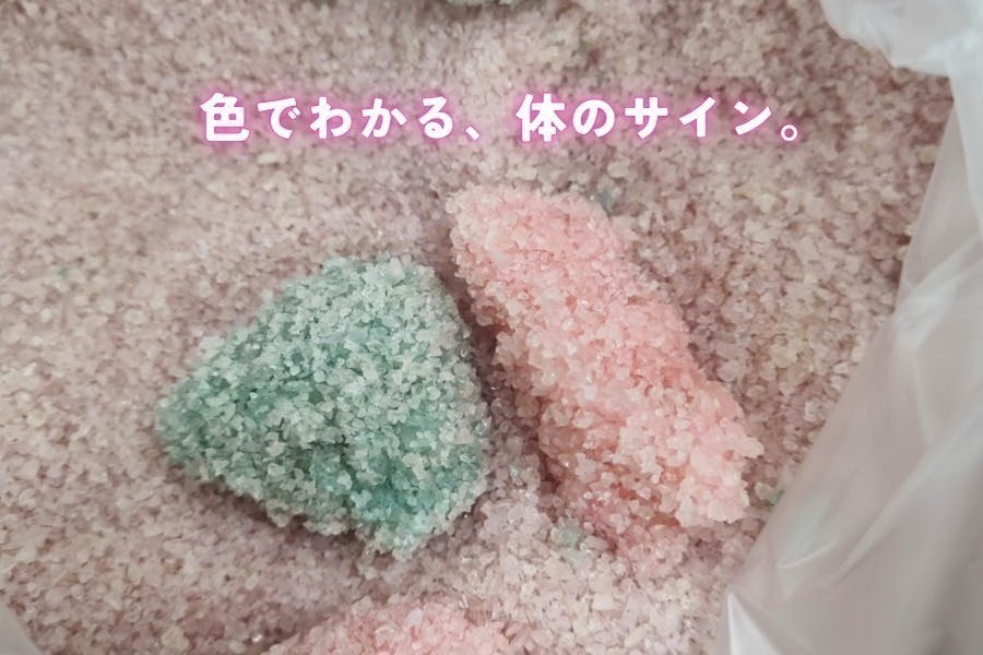 【ヒント】ご安心ください! 『ネコエ』は少量だけ混ぜて使用した場合でも、おしっこと接触することで色変化機能は正常に働き、健康サインを 効果的に察知する ことができます。 ほんの少し既存の砂に加えるだけで、愛猫の健康を毎日チェックできる賢い飼い主さんになれるのです。