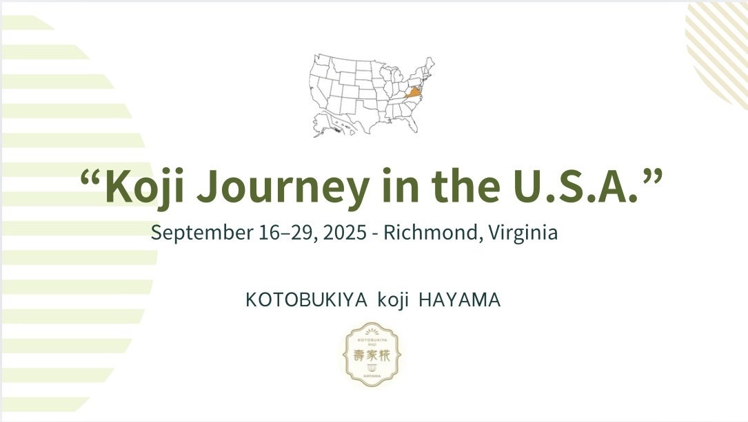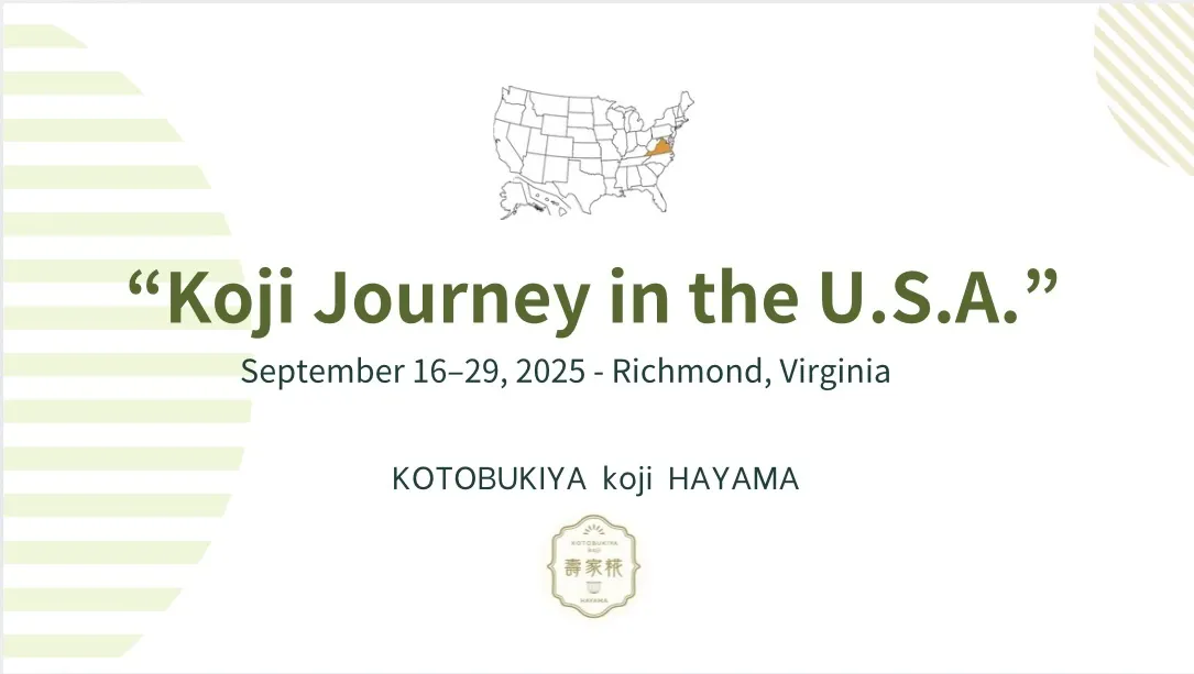 2025.9月、アメリカのバージニア州にある醬油工場で開催される、来場者に醤油を通して発酵をより味わい・体験していただくイベントに参加し、日本の発酵文化を「糀」の魅力を伝える活動を行います。