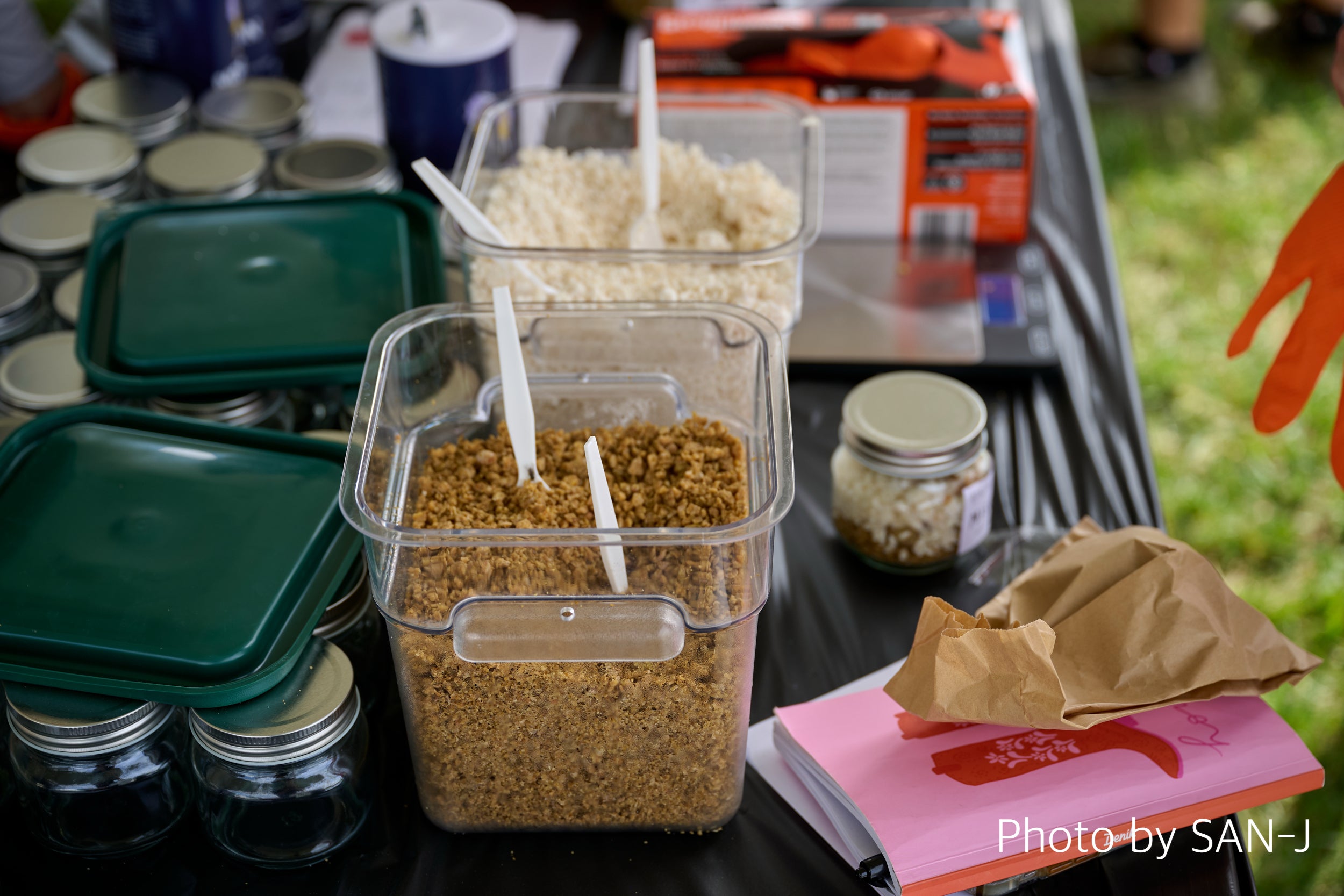 出店ブース内容:SANJを使い醤油糀で具材を使ったおむすびの提供/蒸し鶏の中華麹和え/黒糀甘酒ご試食など。