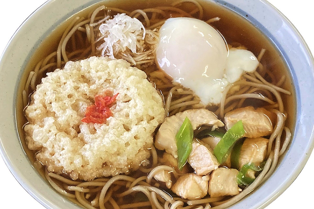 当初は売店で販売している「生そばマルシチ」を食堂でも提供していましたが、原価と調理工程を見直し、10種類以上の業務用を試して選んだお蕎麦を使用しています。賄いでもよく食べますが、そばつゆとの相性もバッチリで気に入っております。一番人気の「かしわ」は臭みを取って下味をつけ柔らかく、ネギは軟白の晒しネギ、「温玉」は毎朝厨房で仕込んだり、巷では珍しい「牛煮(ぎゅうに)」というメニューもあります。