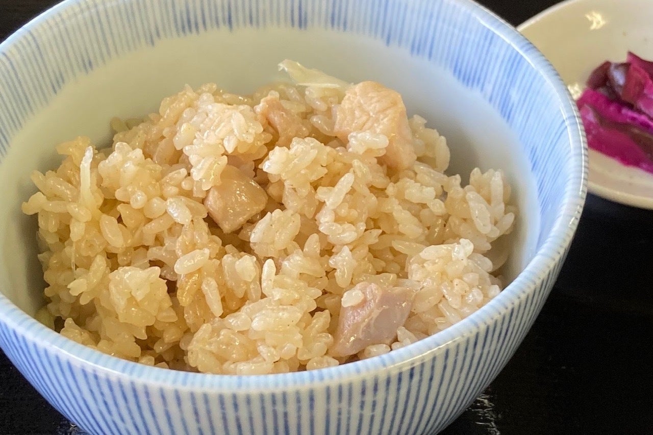 札幌と旭川のちょうど真ん中に位置する美唄市に住んでいた時、大好きだったドライブインの“とりめし”がありまして、村に越してきてからも無性に食べたくなるんです。アレがウチの食堂のメニューにあったら素敵だね、と夫婦で試行錯誤すること丸2年、本家と同じ丸鳥を使用していないのがせめてもの敬意と解釈して、イメージに近づけることができ完成しました。