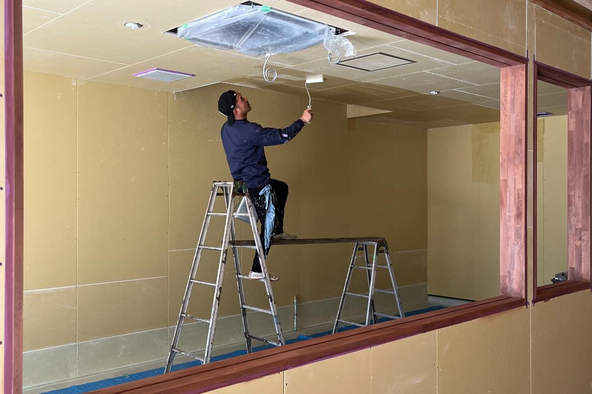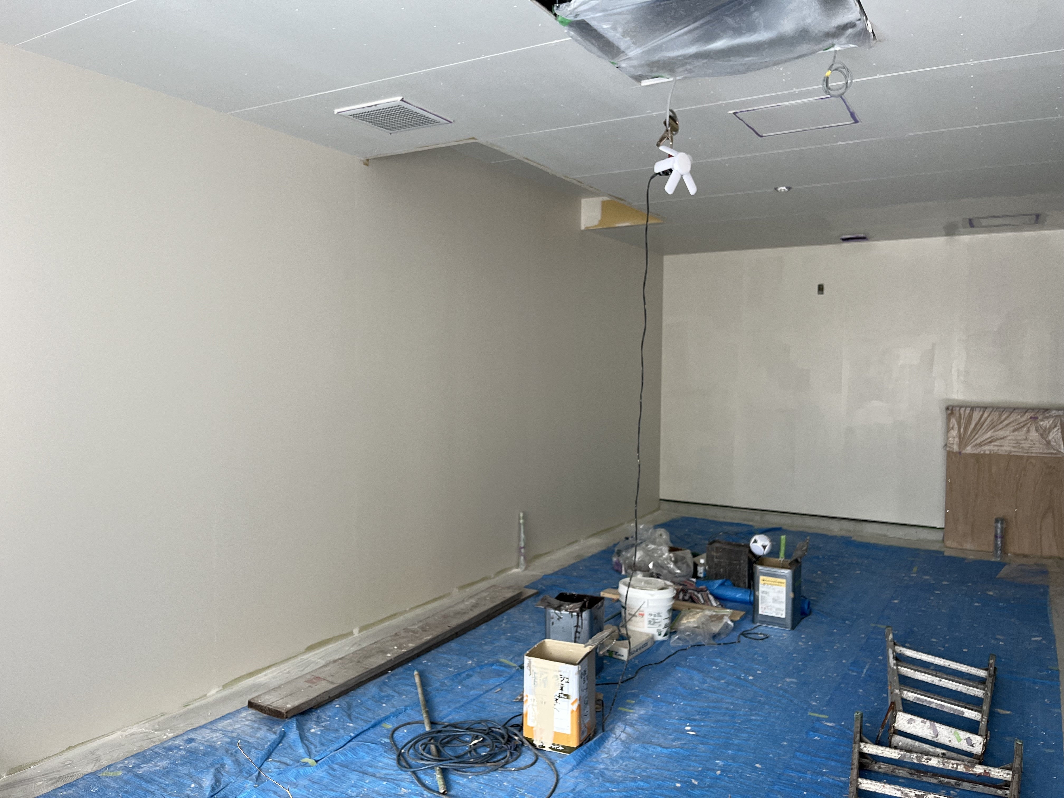 蒸留所内、塗装スタート