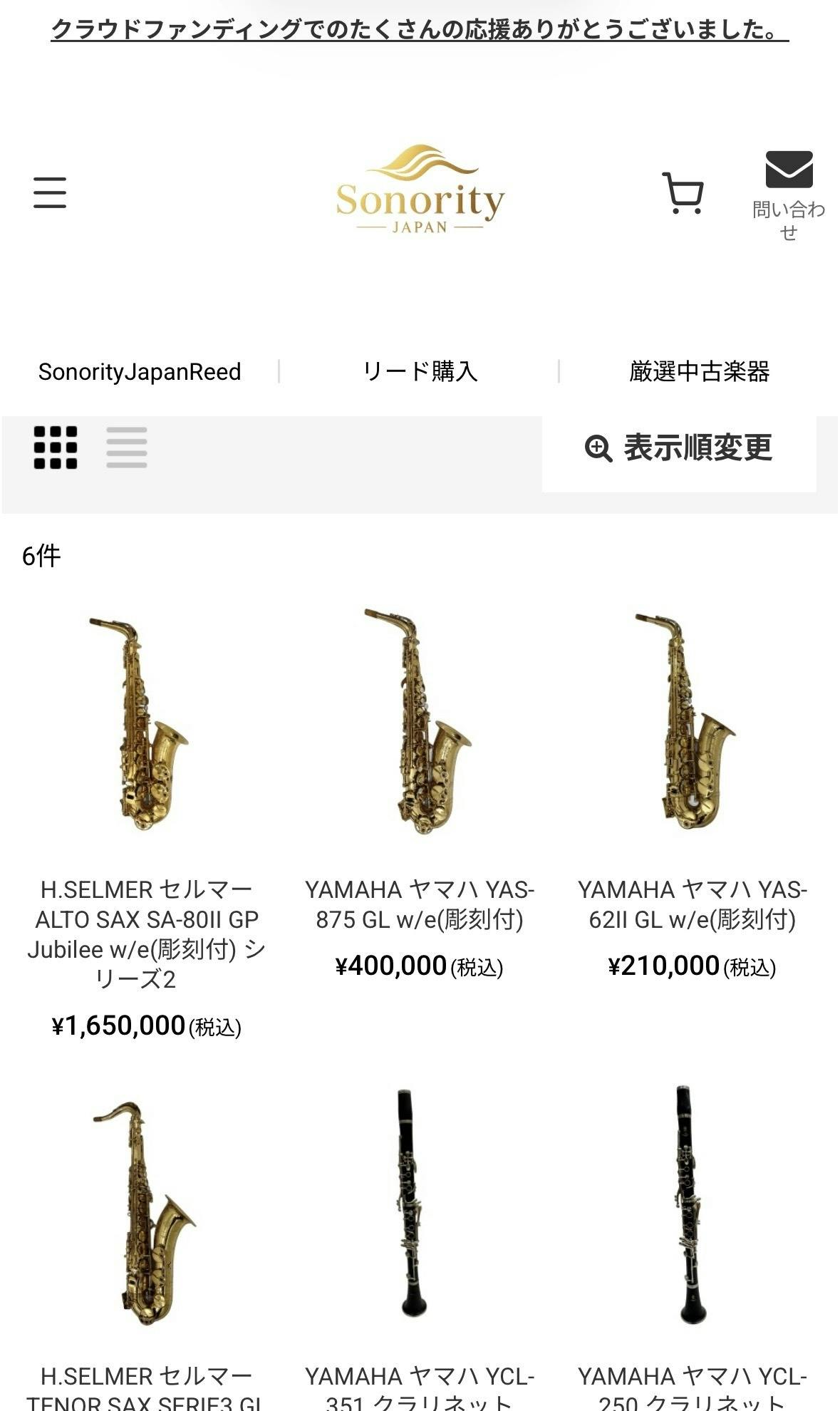 サックス・クラリネットなどの楽器販売も同時にスタートしています。