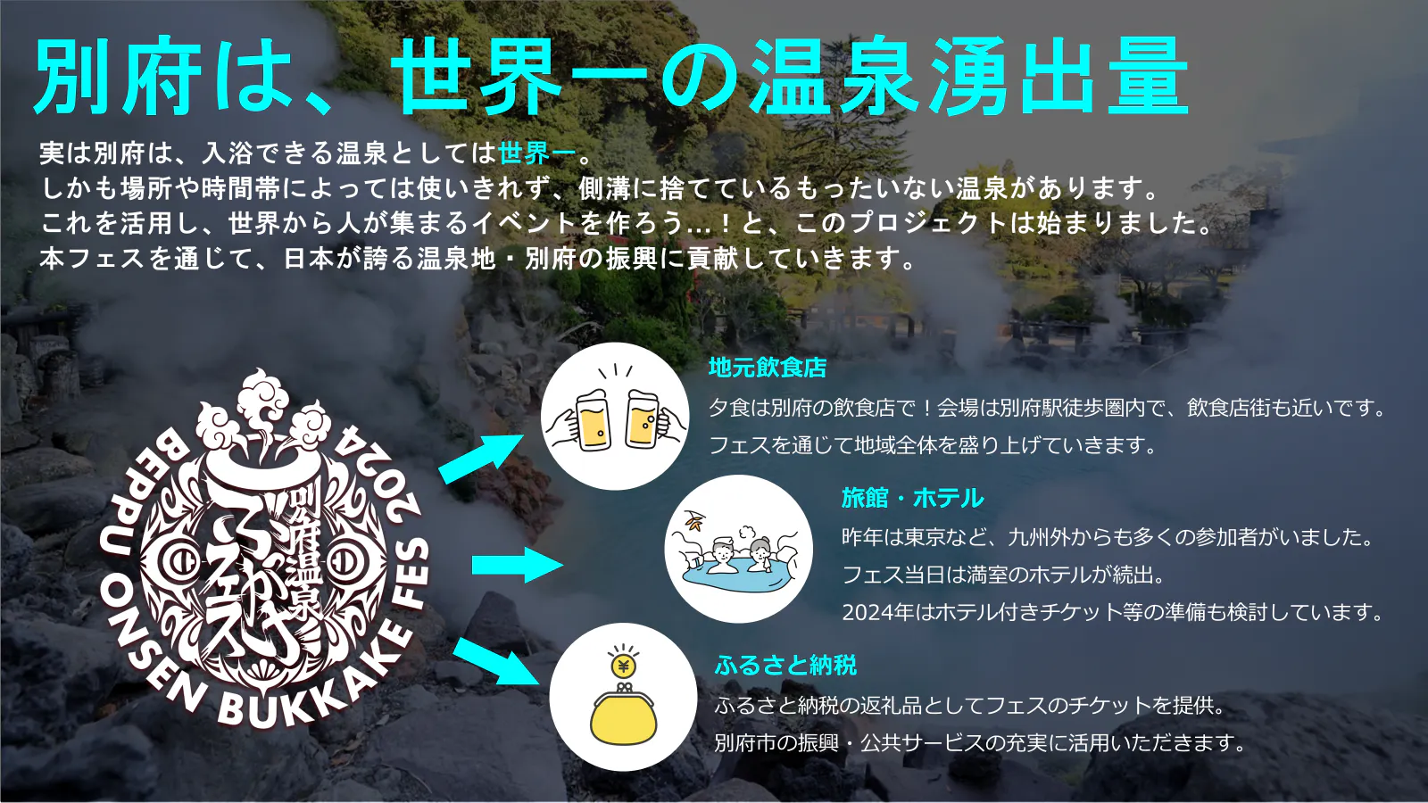 別府市民の皆様が誇りに思う「温泉」を世界に向けて発信するフェスを!