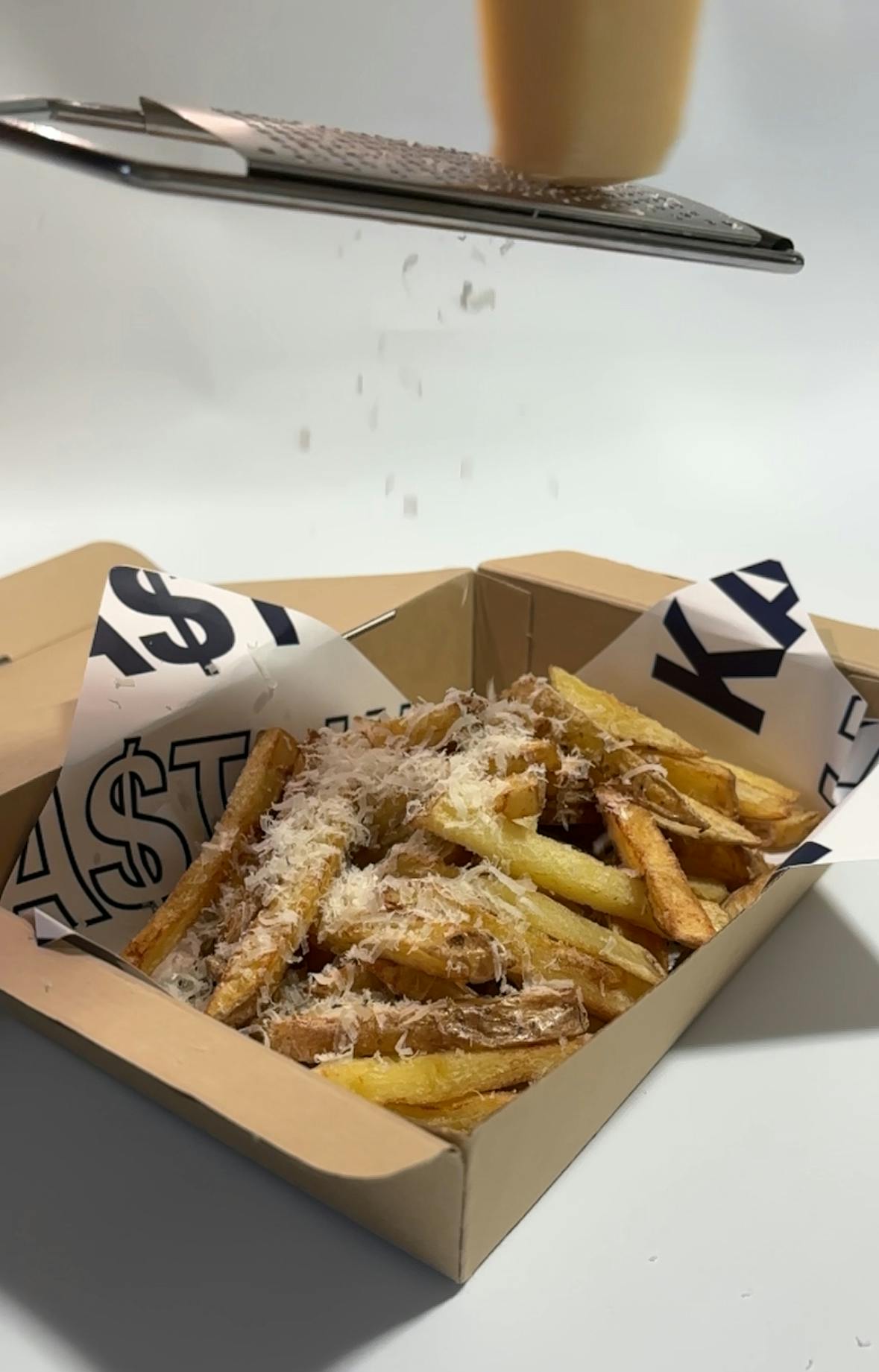 2025/06/14 09:23クラフトボックスなど、細かい変更はあると思いますが、、、。2度揚げしたカリカリのフレンチフライにハードチーズをたっぷり削って提供します。ソースも6種類から選べるようにする予定です。 もっと見る