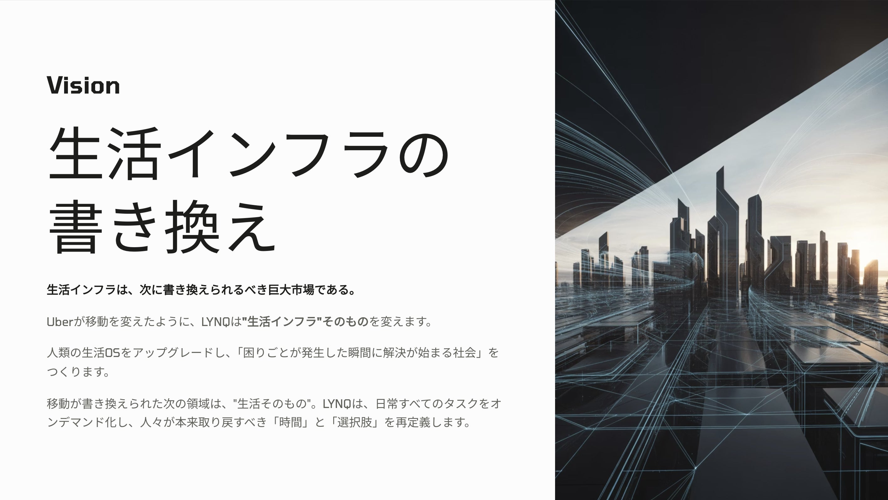“Uberの即時性”を、生活全体に広げる。それがLYNQが目指す未来です。