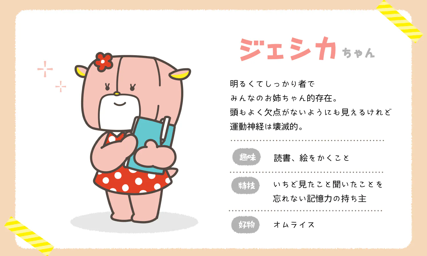 メインキャラクターは、鹿をモチーフにした「ロジカくん」と「ジェシカちゃん」。