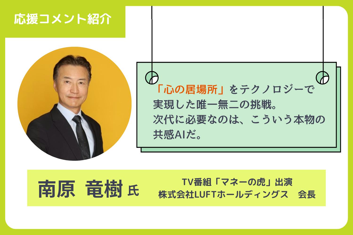 さらに、なんと…実業家として活躍されている「マネーの虎」こと 南原竜樹 さんからも、心強い応援メッセージをいただきました♪