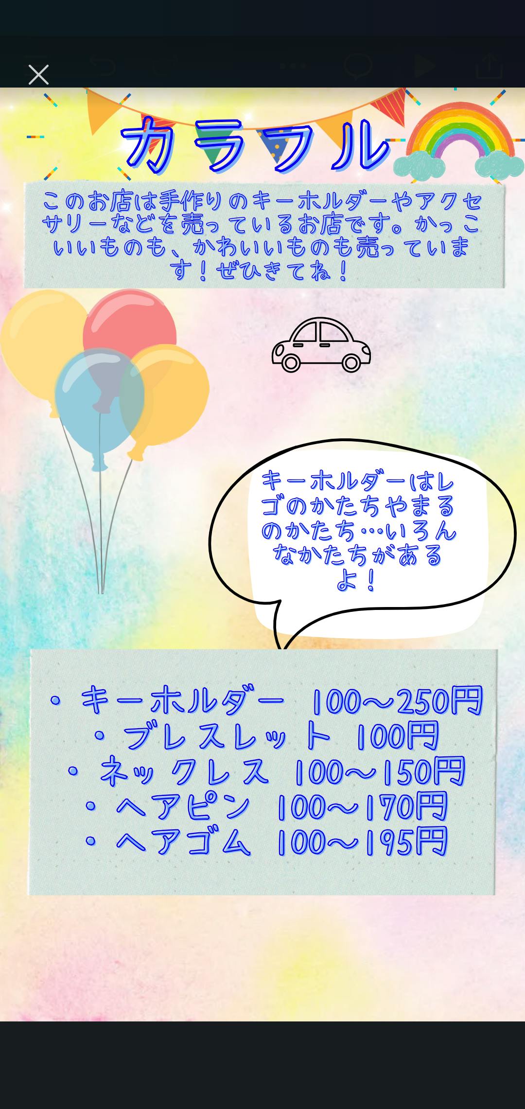 - ・虹色アクセサリーショップ(Sちゃん 1年生)