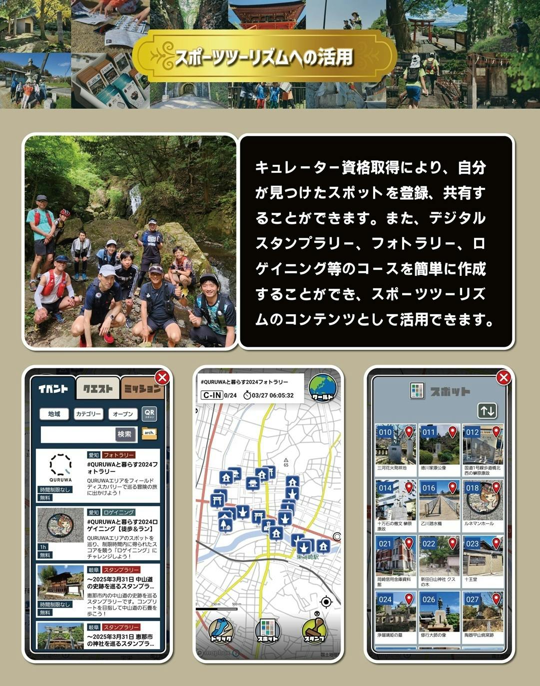 「フィールドディスカバリー®」は、地域観光コンテンツ、日々の健康づくり、スポーツイベントとしても活用することができるアウトドアアクティビティで、「日本の歴史・文化遺産を後世に遺していく」というミッションを掲げています。