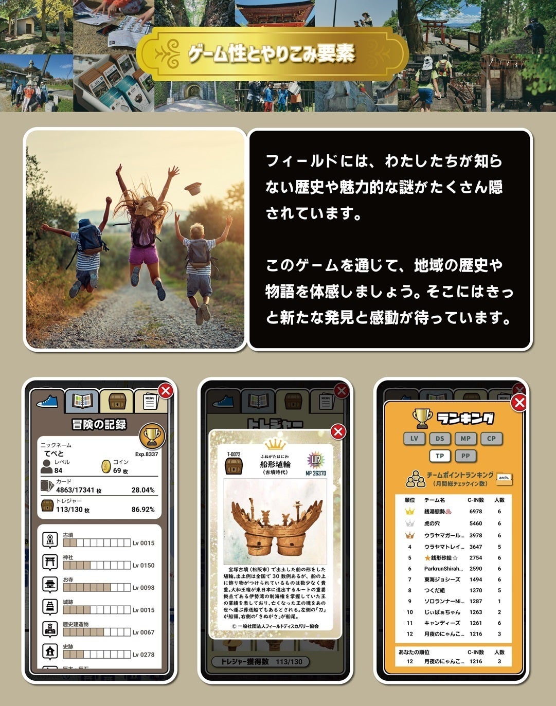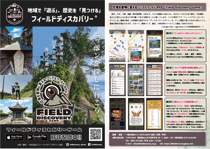 「フィールドディスカバリー®」は、地域観光コンテンツ、日々の健康づくり、スポーツイベントとしても活用することができるアウトドアアクティビティで、「日本の歴史・文化遺産を後世に遺していく」というミッションを掲げています。