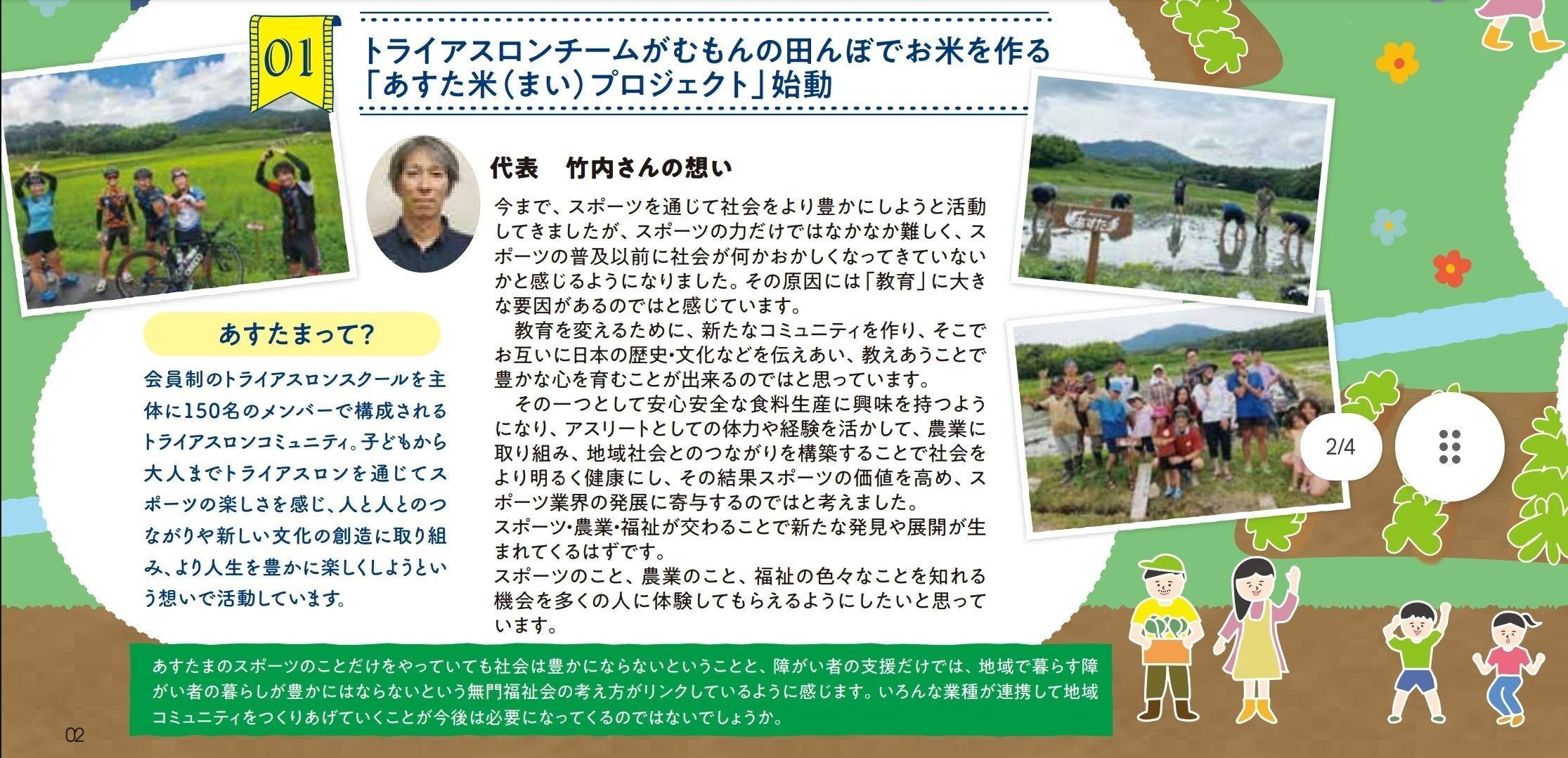 農福連携自然栽培パーティ(無門福祉会)さまのご協力・ご指導の下、アスリートとその仲間たちが作った、農薬や化学肥料に頼らない、安心・安全なお米をプレゼントさせていただきます。自然栽培のため、収量が限られている非常に貴重なお米です。霊山猿投山(愛知県豊田市)の麓、豊かな自然生態系の中で、育ったお米は甘くてとても美味しいので、ぜひ食べてみてください。