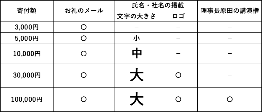 ②HP上でお名前や社名を掲載します。(30,000円はロゴも掲載可)