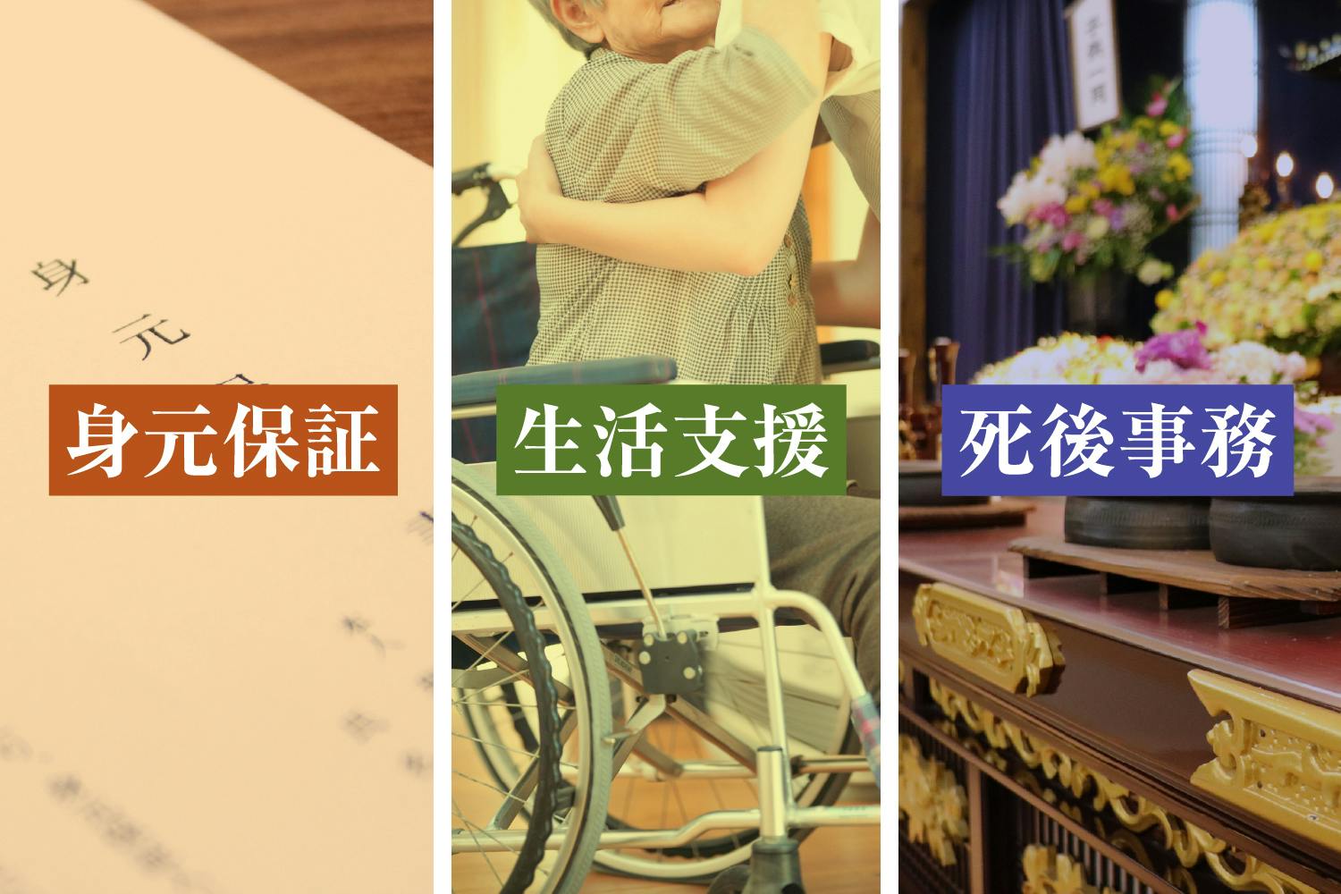 医療費や入院費の精算、遺体の引き取り、居室の現状回復、葬儀・納骨などなど、身寄りのない中でどう対応するべきか悩んでいる方が大勢います。