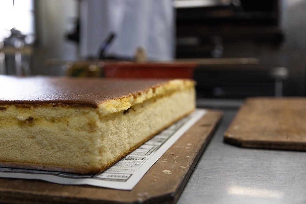 ・焼き上げたカステラを袋詰め