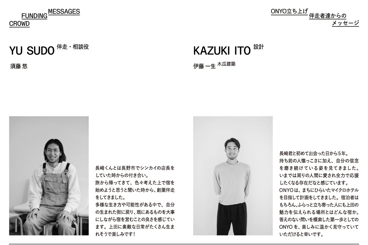 初めましての方もそうでない方も、ご覧いただきありがとうございます。プロジェクトオーナーの長崎航平と申します。この度、僕の地元である長野県は上田市で宿泊施設「ONYO Hotel and Lounge」(オンヨウ ホテルアンドラウンジ)を開業いたします。