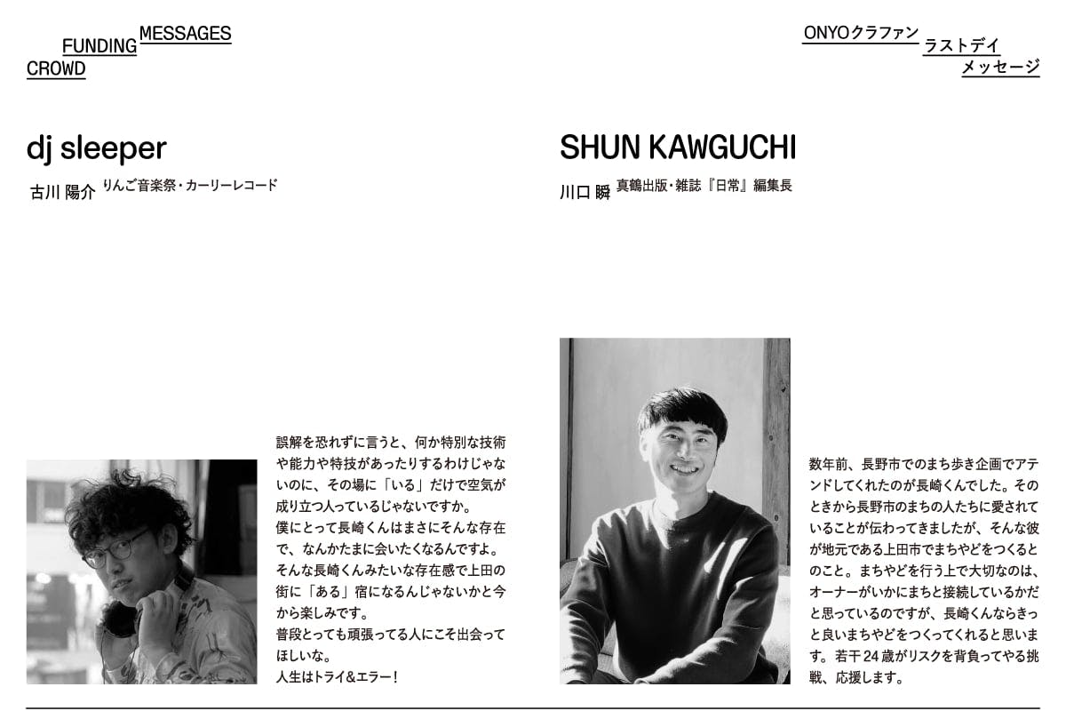 クラウドファンディングに際して、立ち上げからともに走り続けてくださっている皆様に加え、日頃からお世話になっている皆様にもメッセージをいただいています。