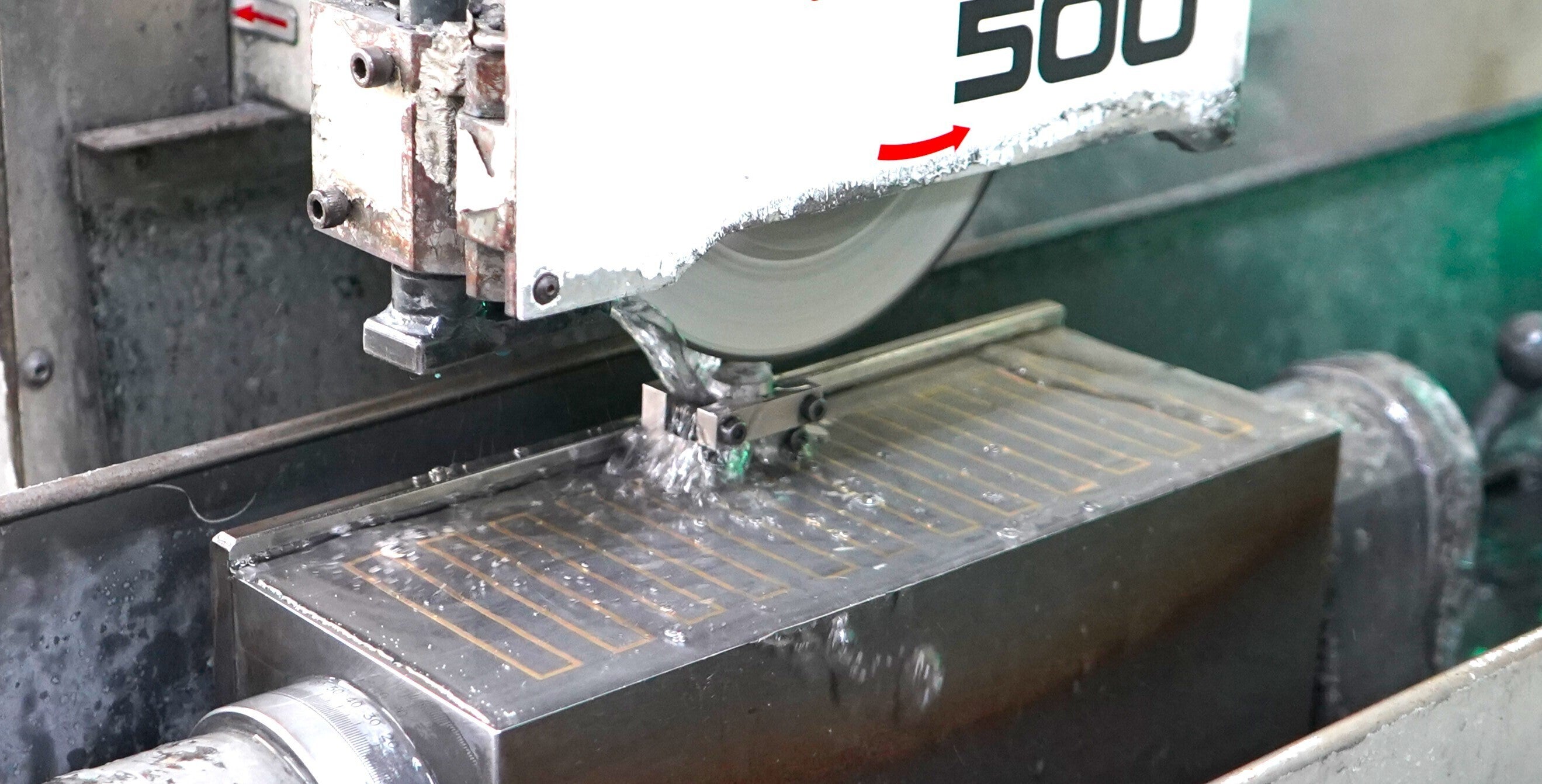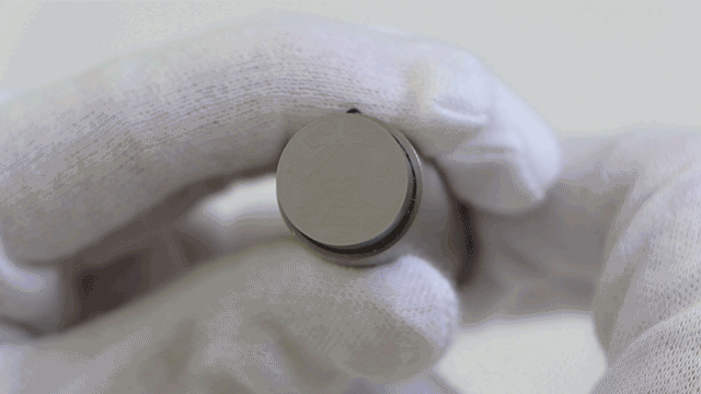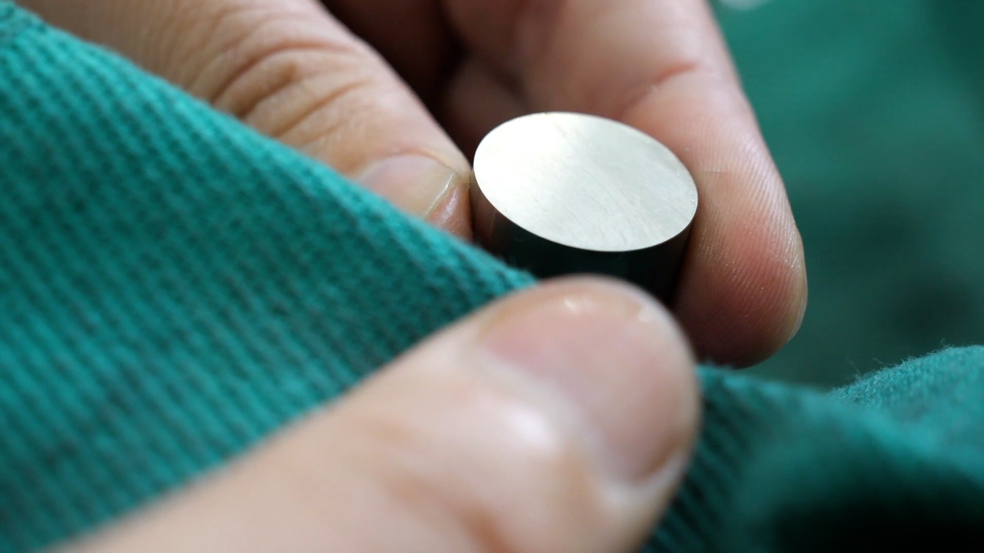 ⑦ 材料に高温の熱を加え材料の硬度を出し、研磨。厚み15.000(±0.001)mmにする。