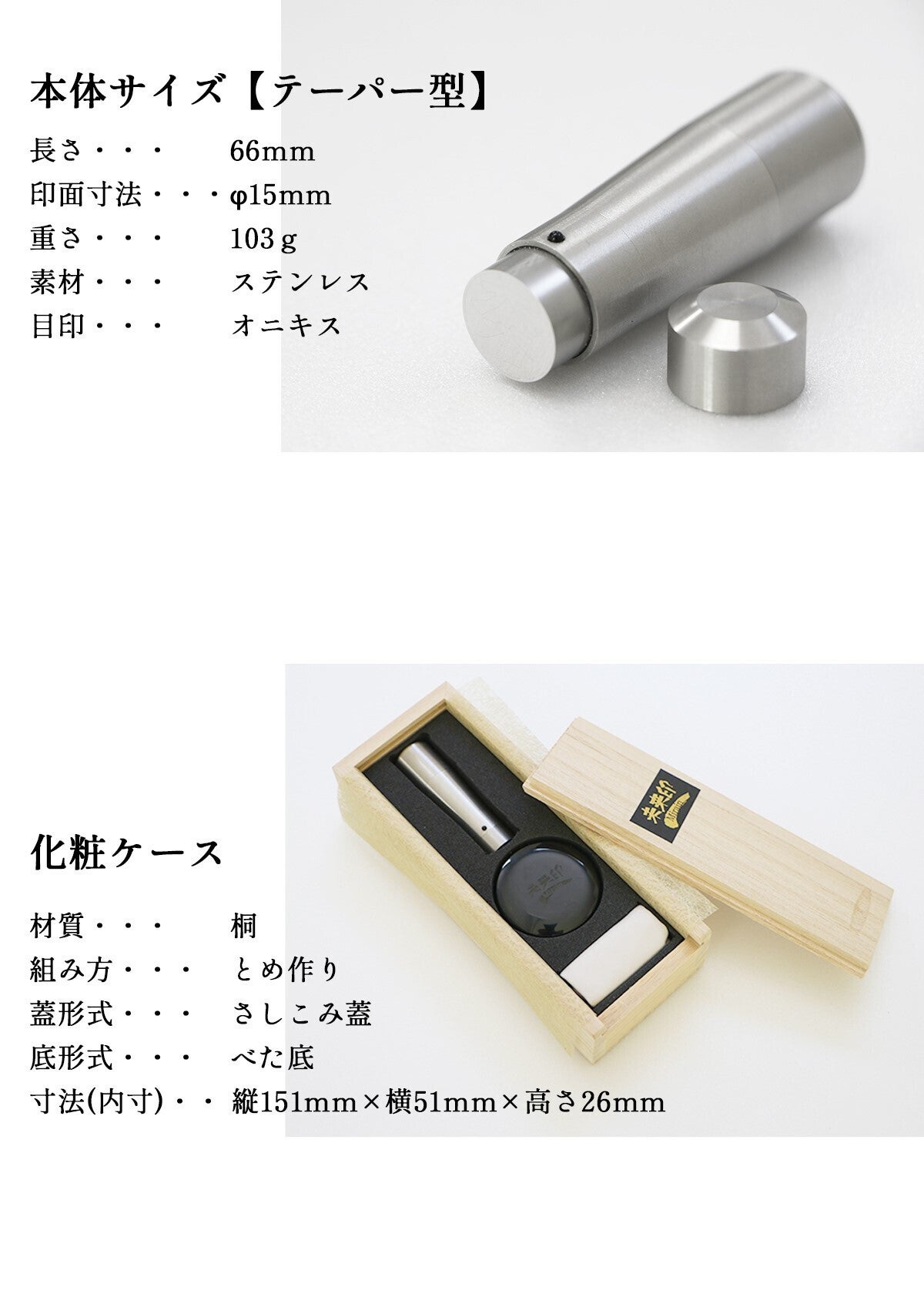 15㎜の印面の場合、注文者のお名前等好きな文字を2文字まで入力する。