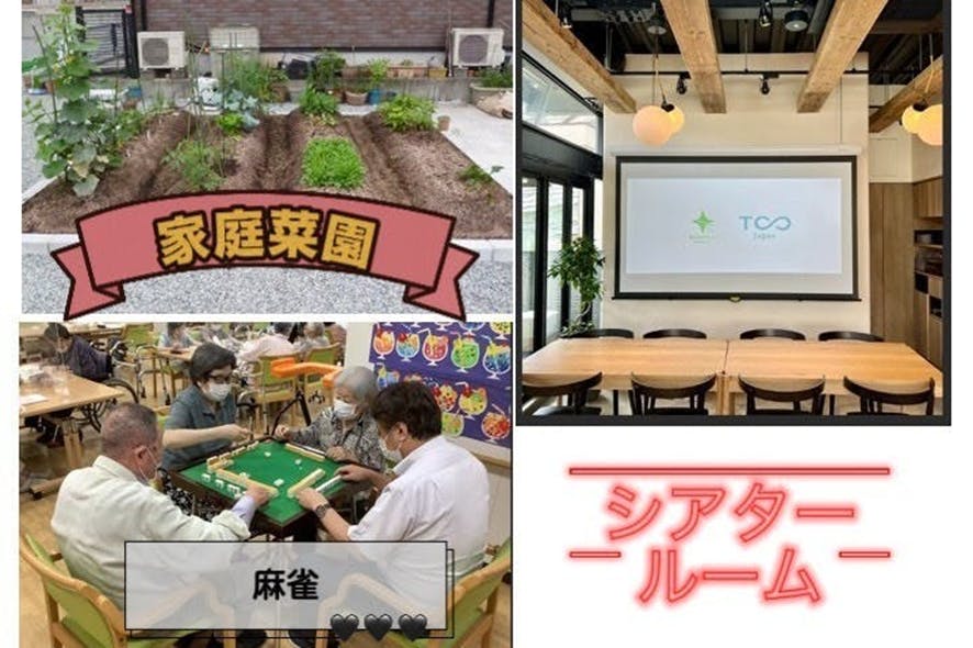 ・デイサービスでは利用者の興味がある活動をして過ごせるように、家庭菜園コーナー、シアターコーナー、体操コーナー、リハビリコーナー、麻雀コーナーなど退屈しないように工夫します。