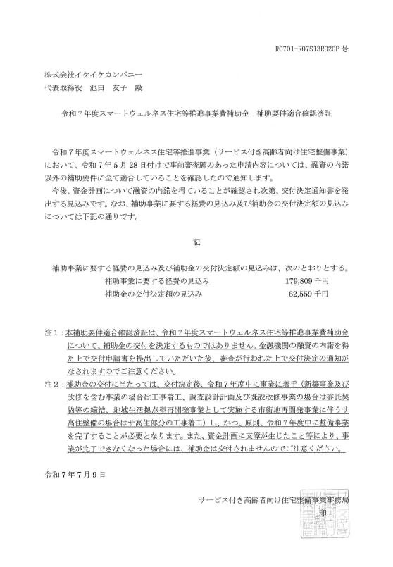 2025.6から7月 国土交通省「サービス付き高齢者向け住宅整備事業」補助金を申請