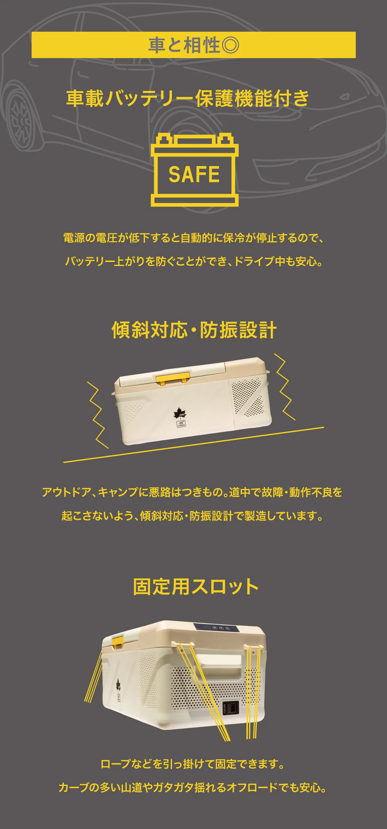 返信対応ありがとうございます。 承知致しました。 ポータブル冷蔵庫を使用して車のバッテリーに 影響が及ばないようにセーフティが発生する事は ポータブル説明記載通りだと存じますが その他で、車に燃費に影響するあったりする事はあるのでしょうか? 今ガソリン車を使用しています。
