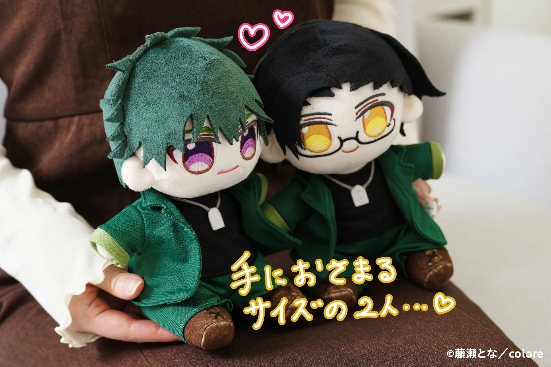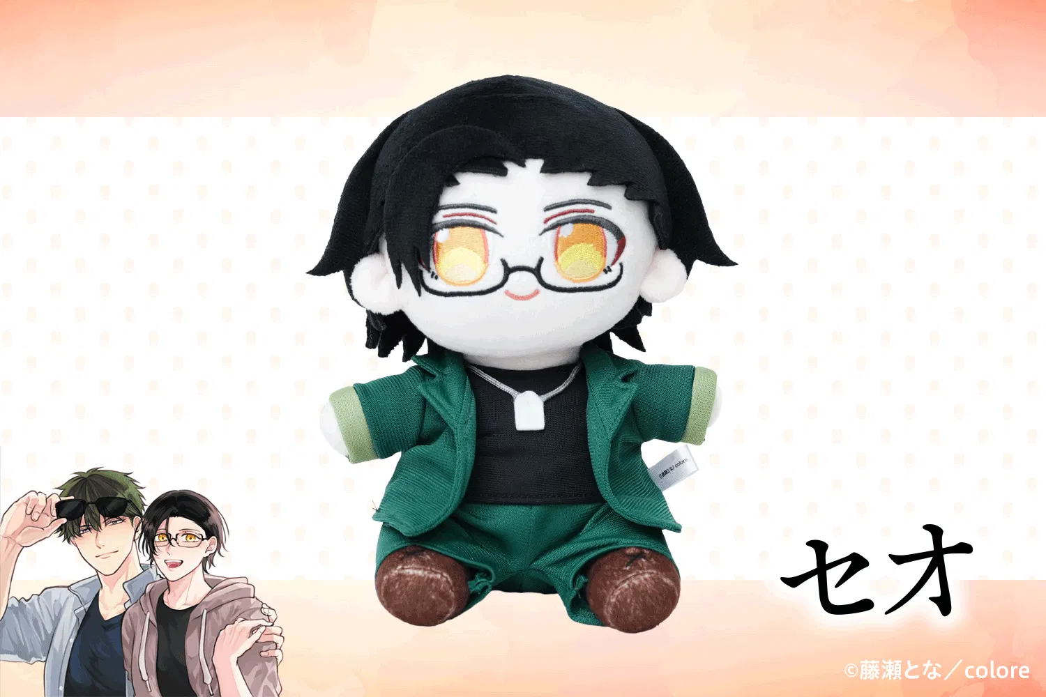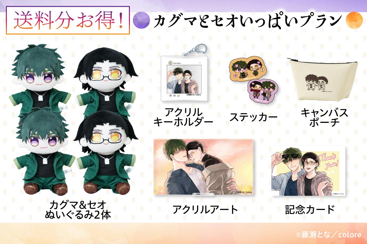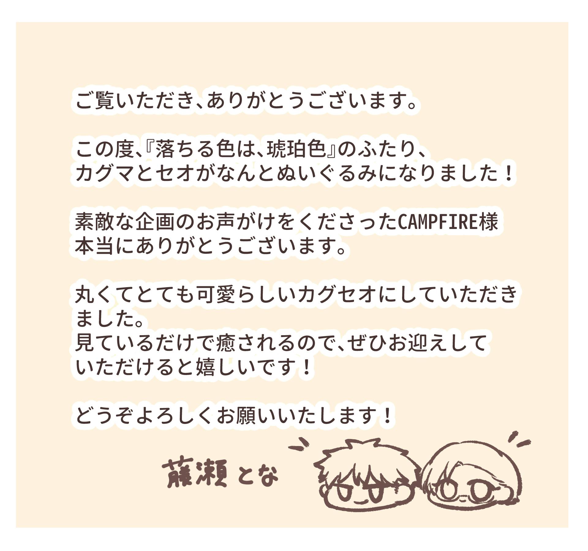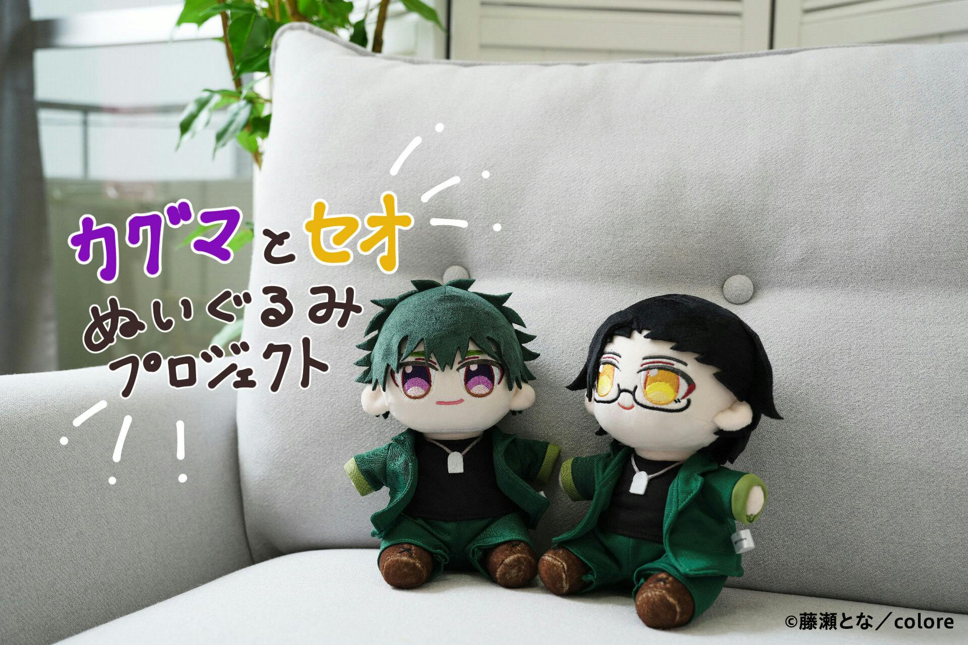 漫画家藤瀬となが描くBL漫画『落ちる色は、琥珀色』から「カグマとセオ」がぬいぐるみ化に挑戦します!