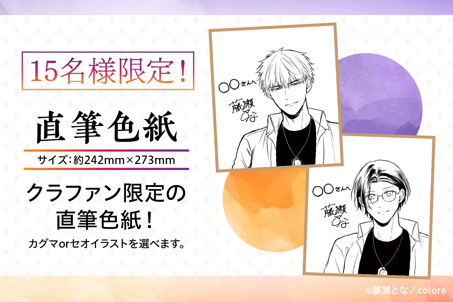 直筆色紙はカグマorセオのどちらか好きなイラストを選べます!
